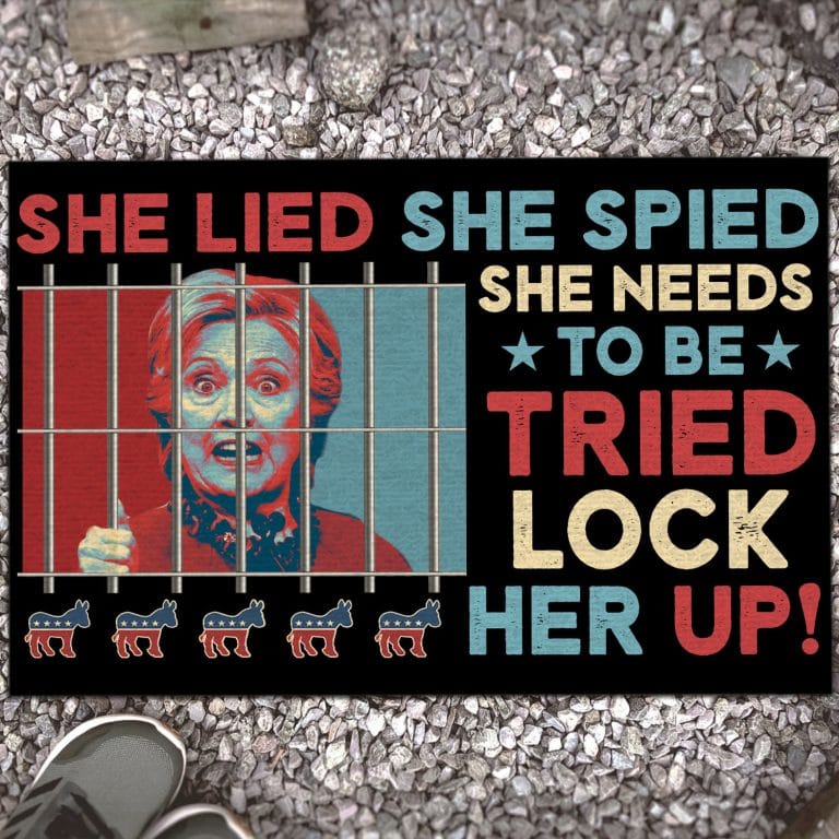 Let’s Shop She Lied She Spied She Needs To Tried Lock Her Up Indoor Doormat – Funny Hillary Clinton Outdoor Door Mat!