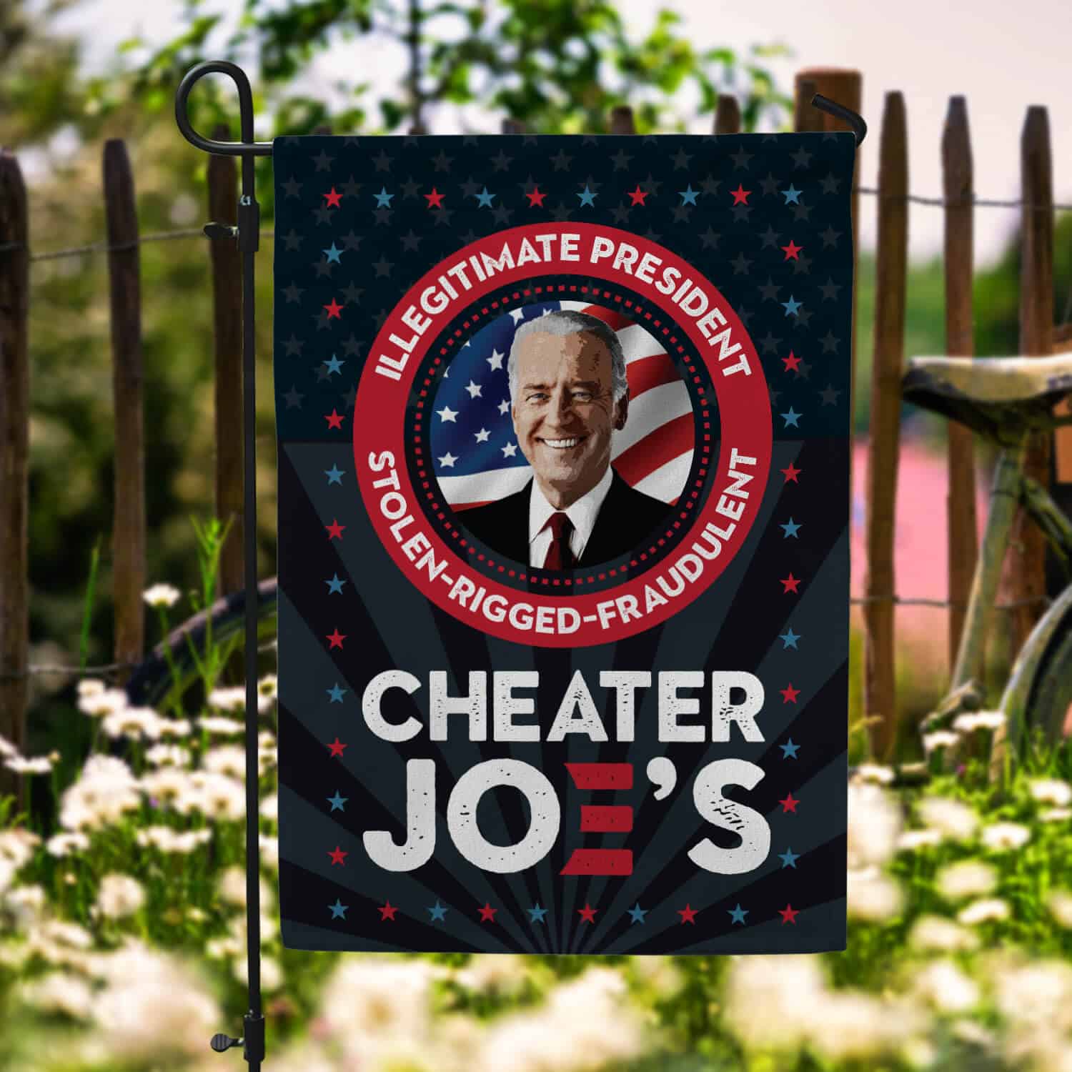 Let’s Shop Cheater Joe Biden Illegitimate President Garden Flag – Impeach Biden House Flag – Anti Biden Wall Flag!