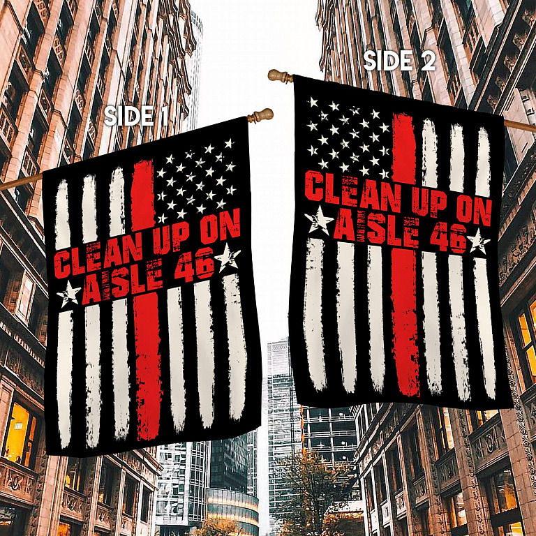 Let’s Shop Clean Up On Aisle 46 Outdoor Garden Flag – House Flag – Wall Flag – Anti Biden Harris Flag!