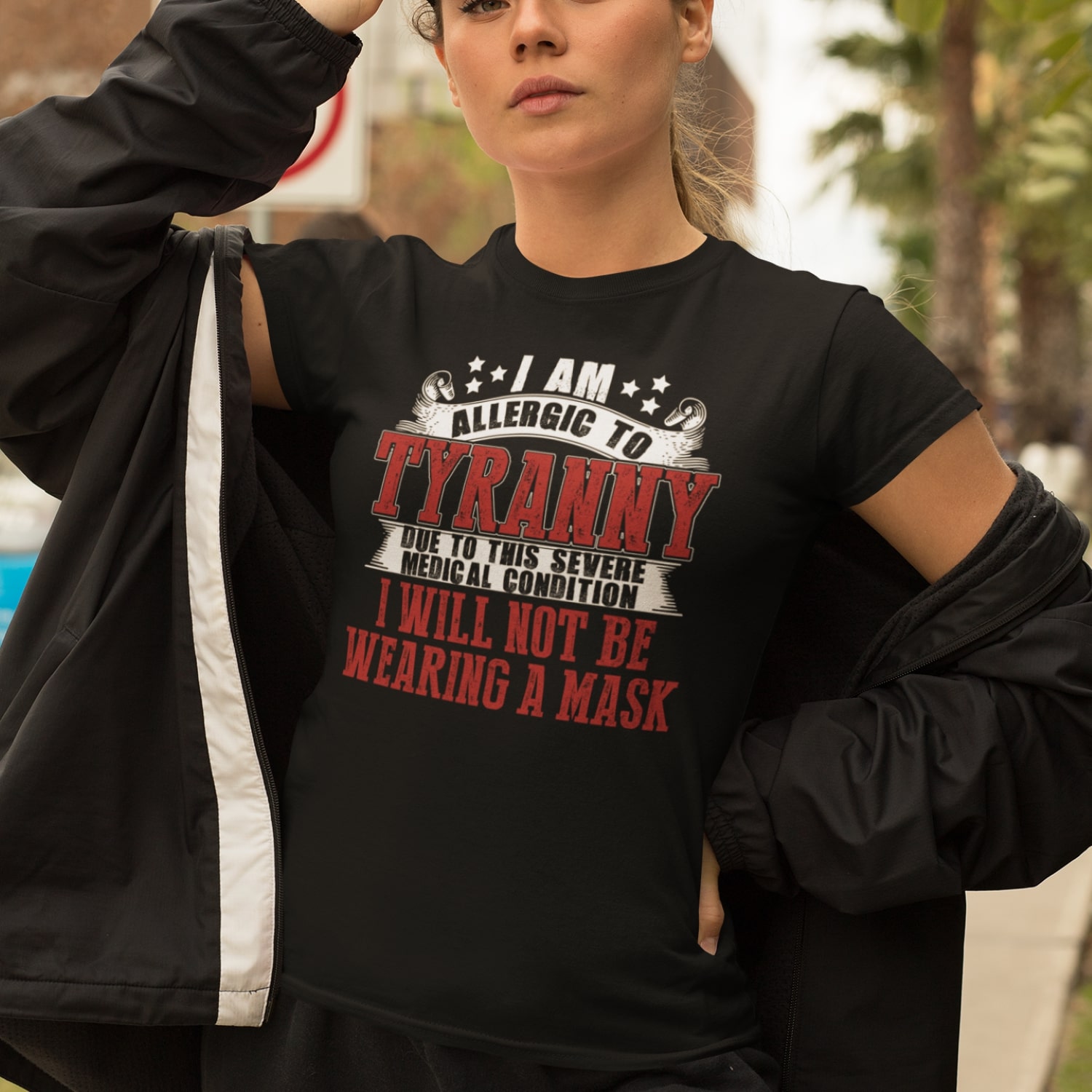 I Am Allergic To Tyranny Due To This Severe Medical Condition I Will Not Be Wearing A Mask T-Shirt