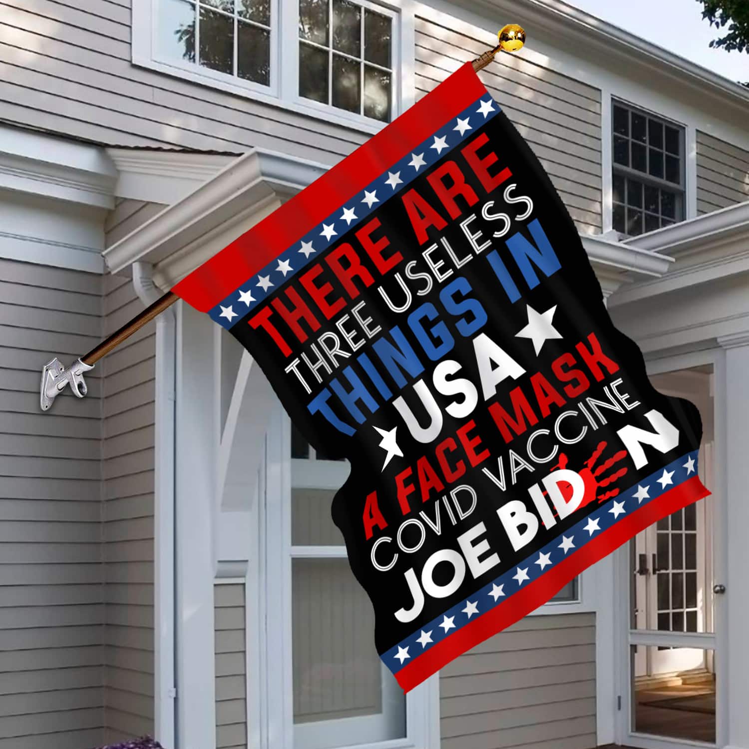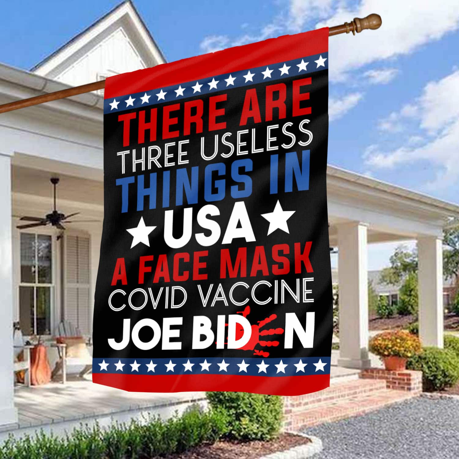 Let’s Shop There Are Three Useless Things In USA A Face Mask Covid Vaccine Joe Biden Decorative Garden Flag – Indoor Outdoor Flag – House Flag!