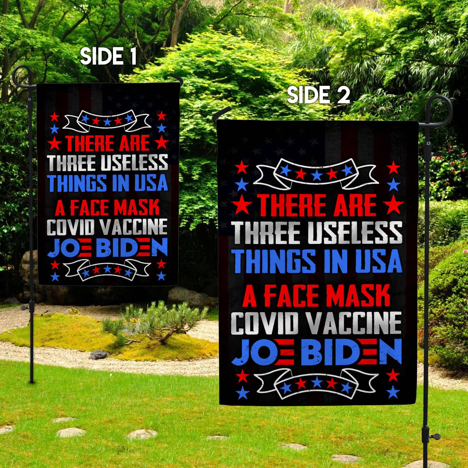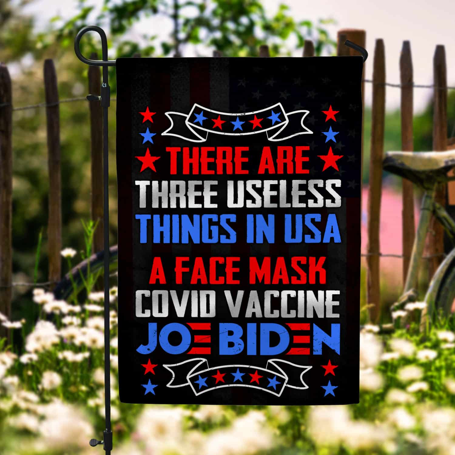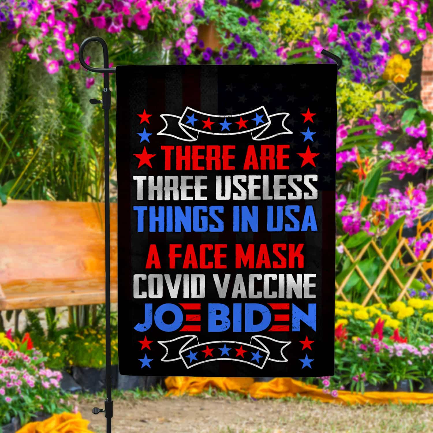 Let’s Shop There Are Three Useless Things In USA A Face Mask Vaccine Joe Biden Garden Flag – Anti Biden House Flag!