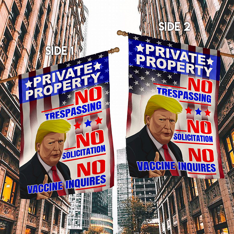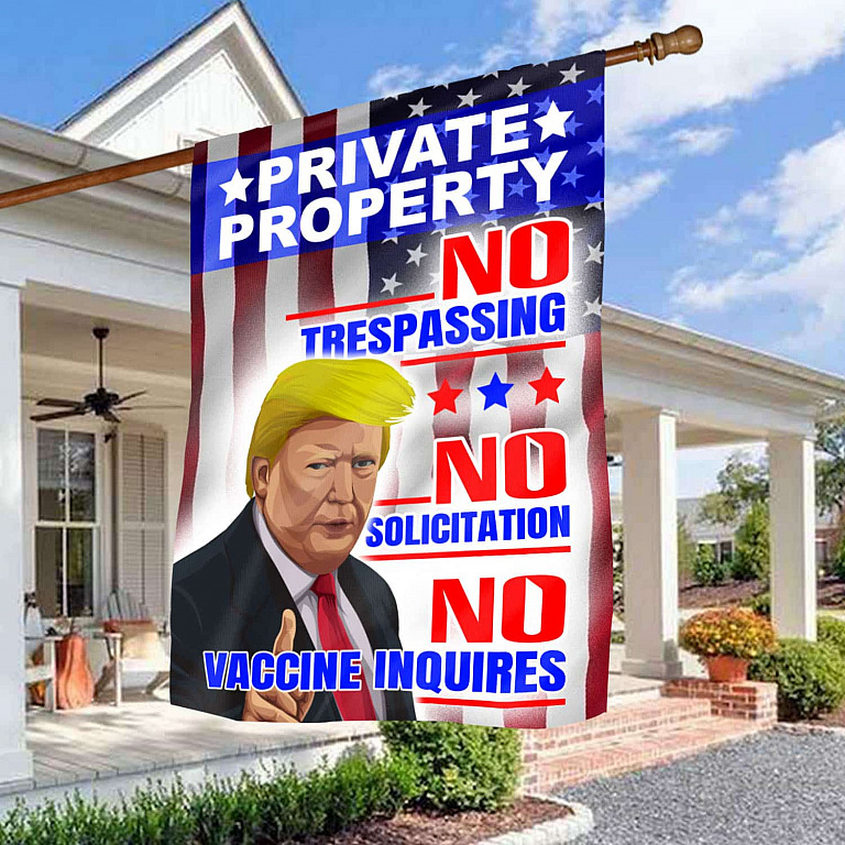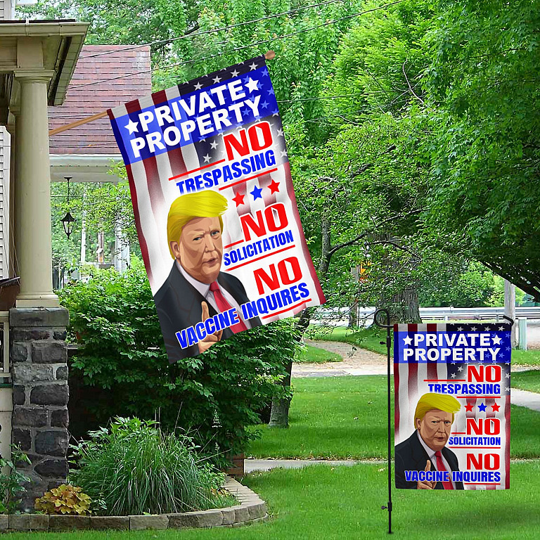 Let’s Shop Trump Private Property No Trespassing No Solicitation No Vaccine Inquires Outdoor Garden Flag – House Flag – Wall Flag!