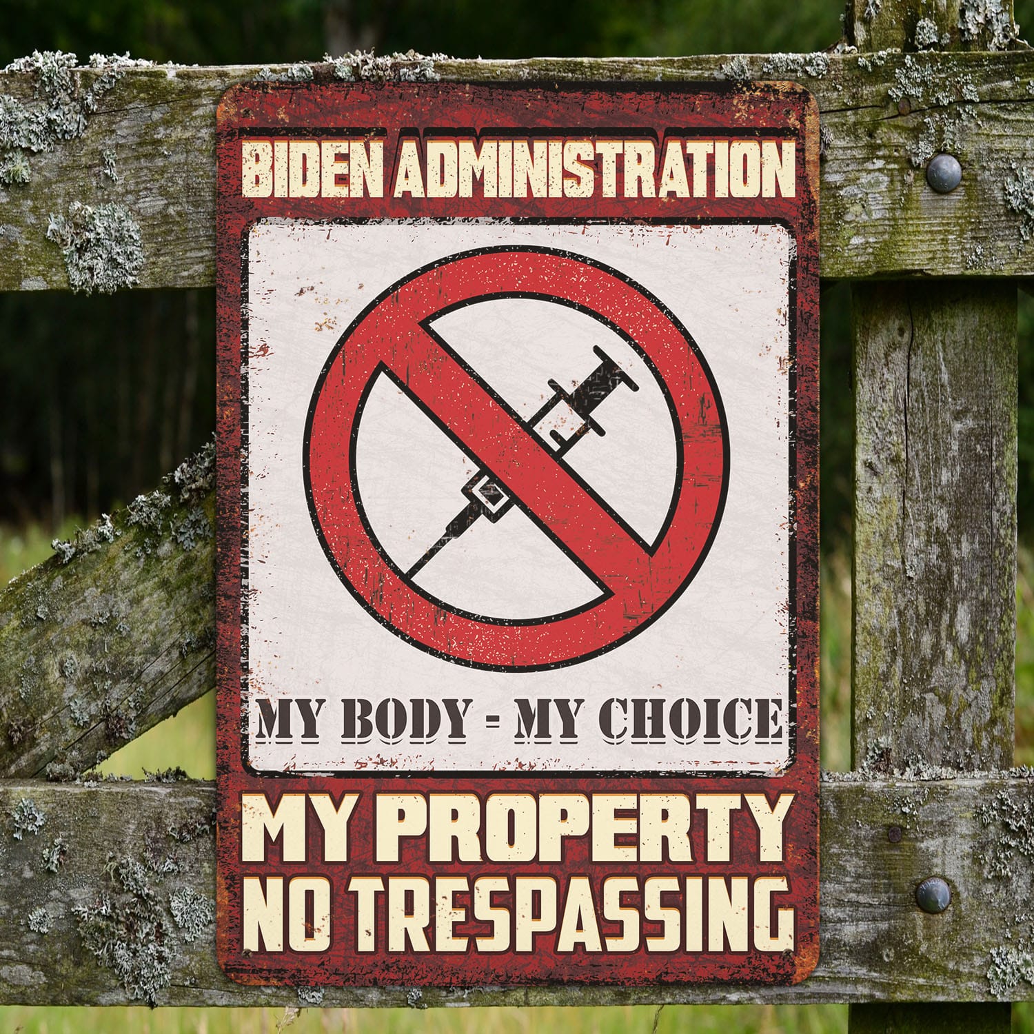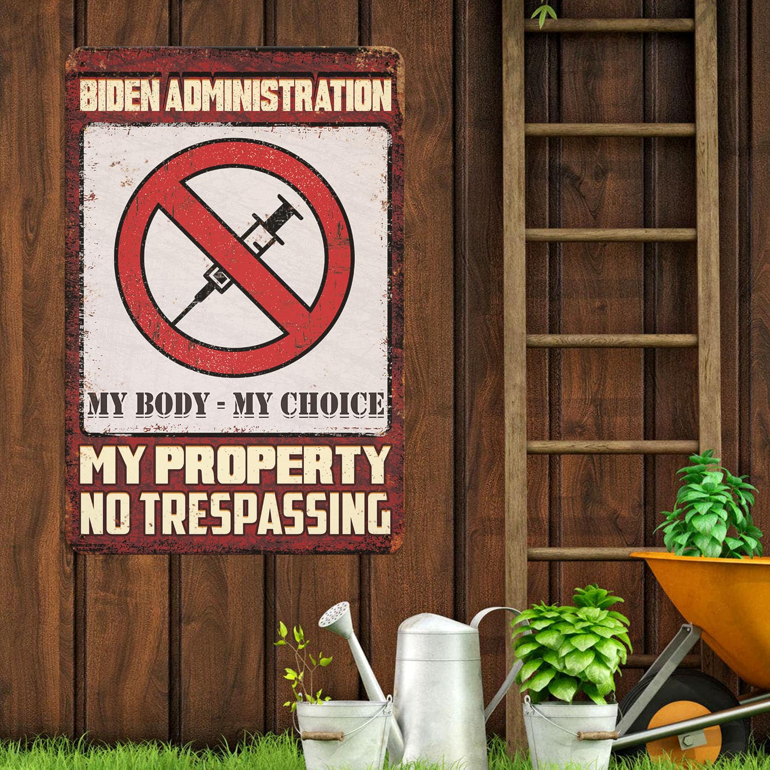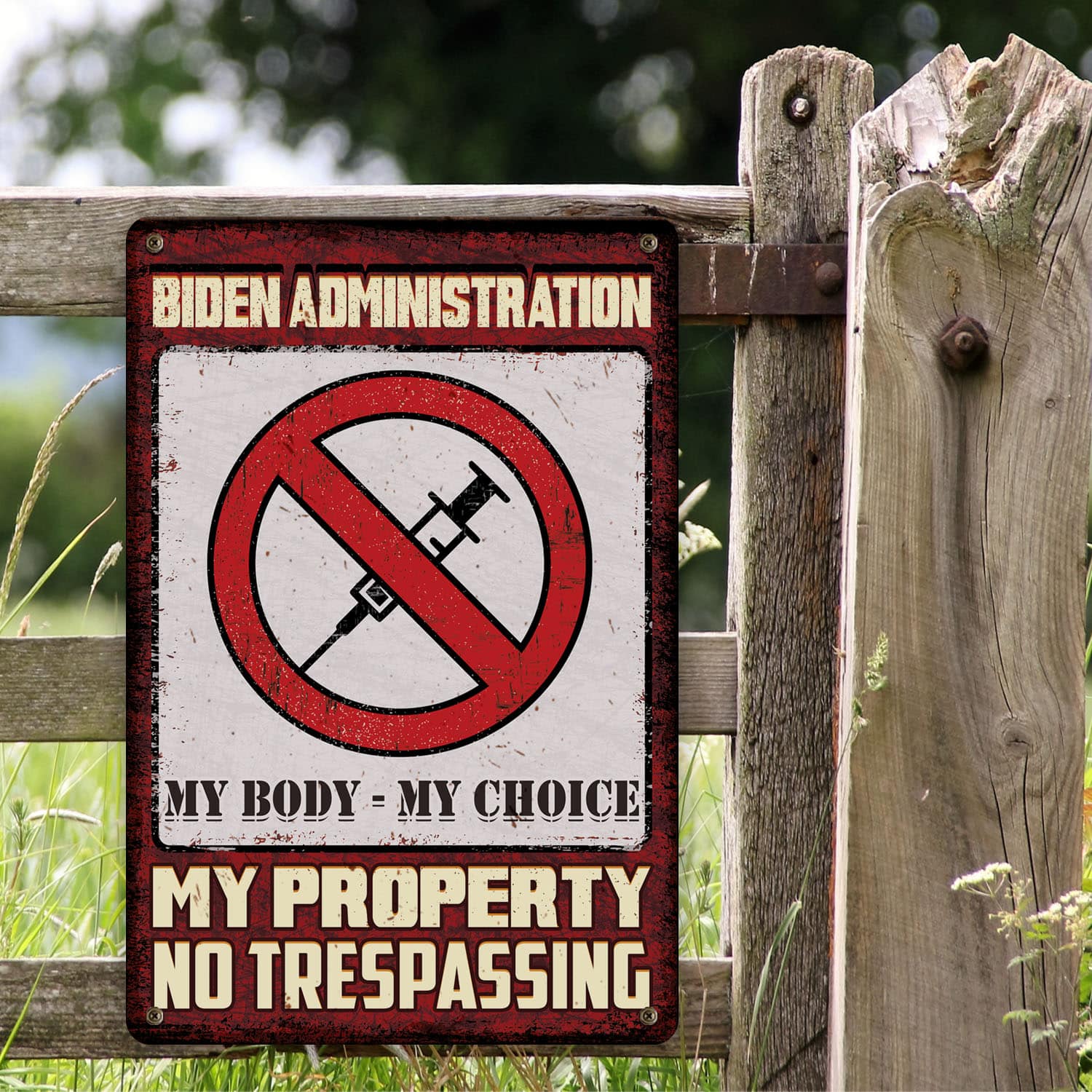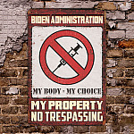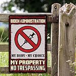 Let’s Shop Biden Administration My Body My Choice My Property No Trespassing Decorative Metal Sign – Anti Vaccine Outdoor Sign!