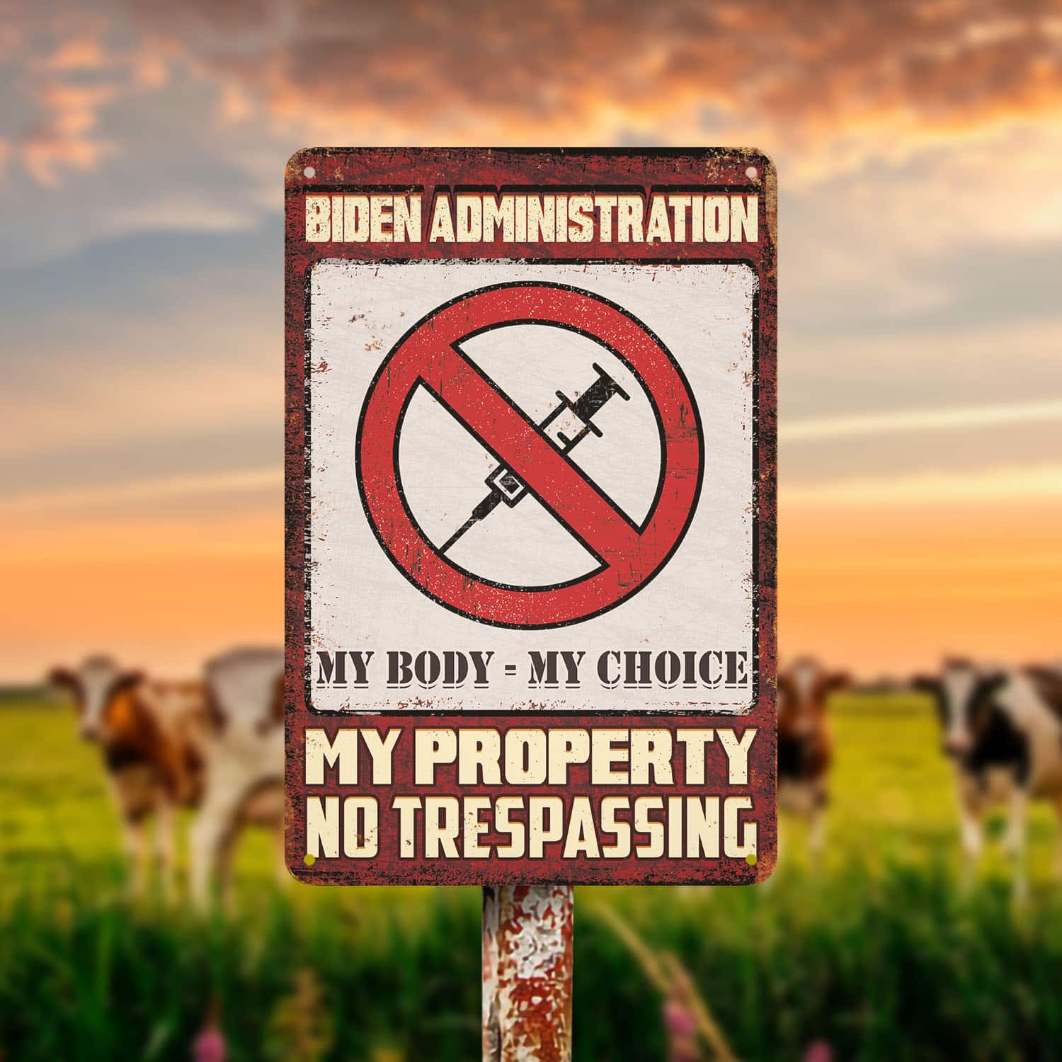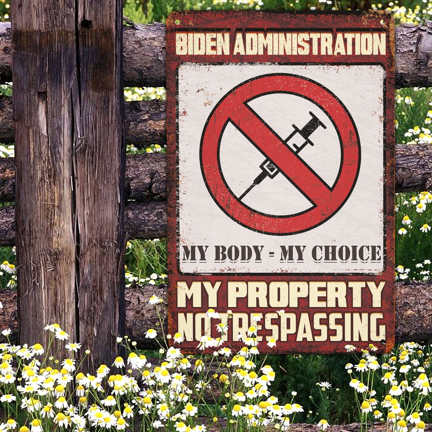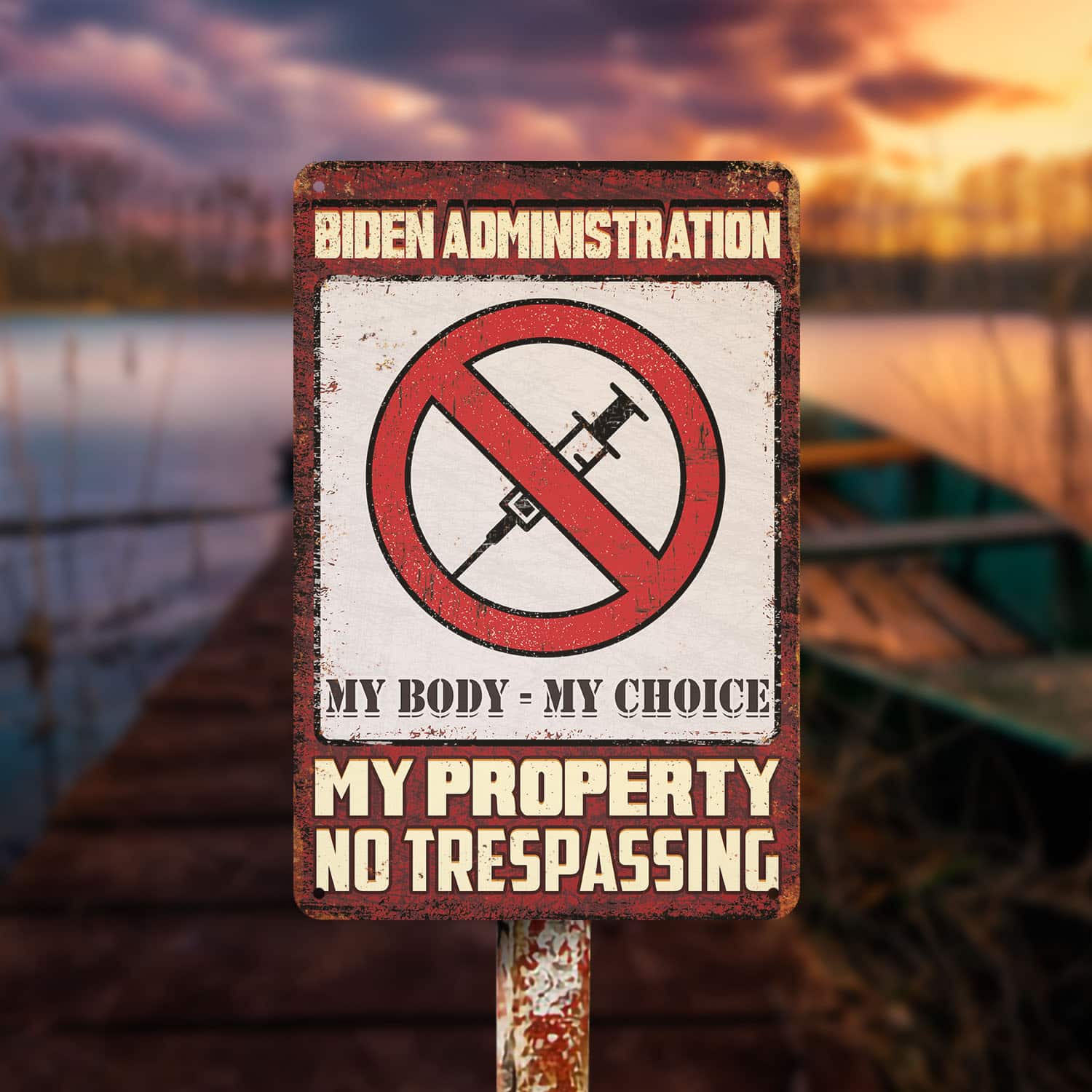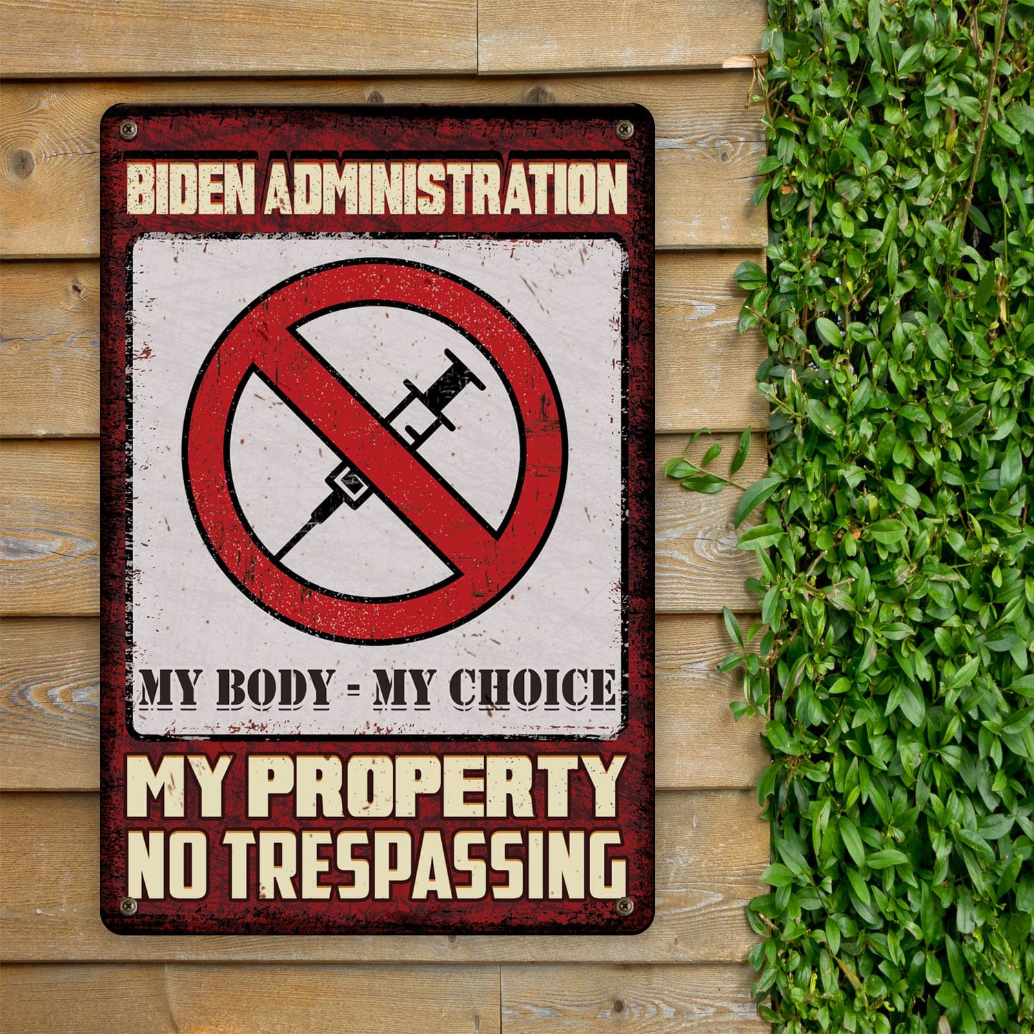 Let’s Shop Biden Administration My Body My Choice My Property No Trespassing Decorative Metal Sign – Anti Vaccine Outdoor Sign!