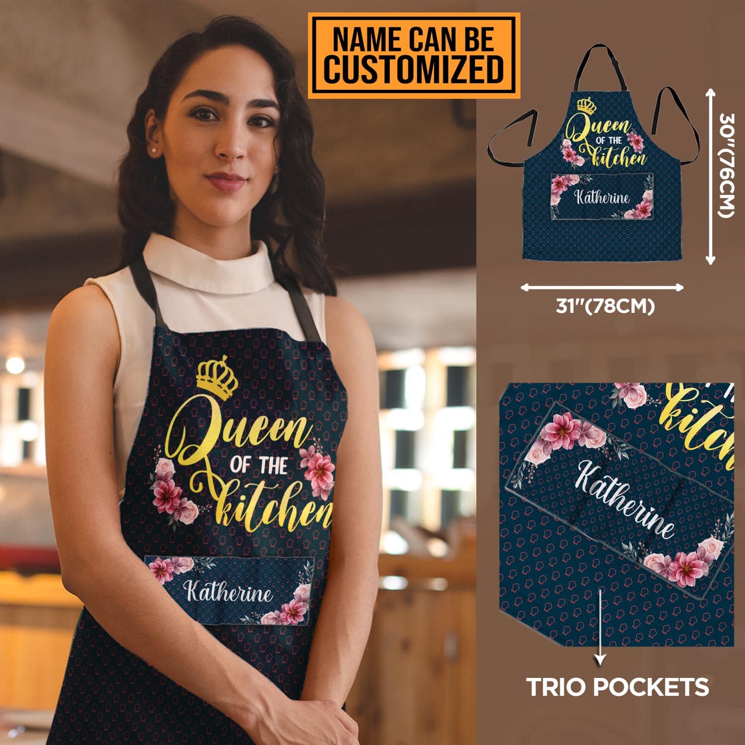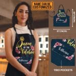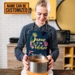 Let’s Shop Personalized Kitchen Aprons For Women Queen Of The Kitchen Funny Cooking Apron with Three Pockets – Adjustable Neck Strap!