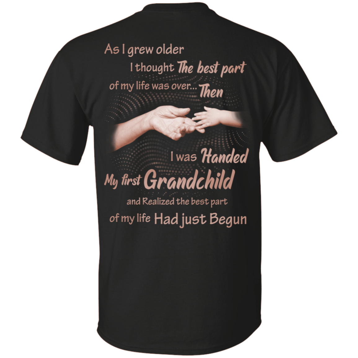 As I Grew Older I Though The Best Part Of My Life Was Over Then I Was Handed My First Grandchild Print On Back T-Shirt