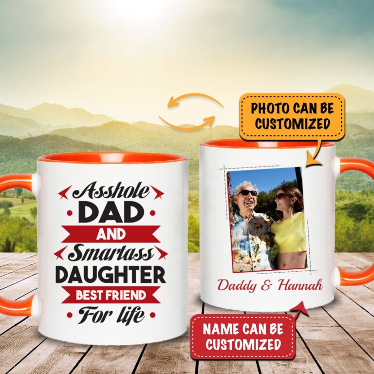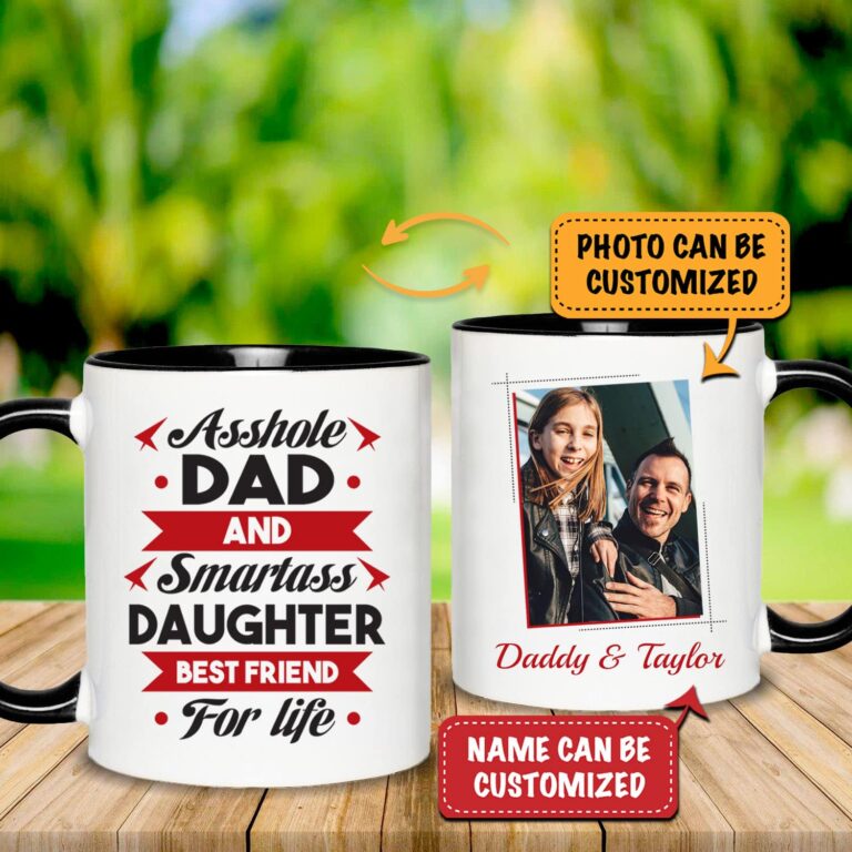 Let’s Shop Personalized Photo Asshole Dad And Smartass Daughter Best Friend For Life Accent Coffee Mug!