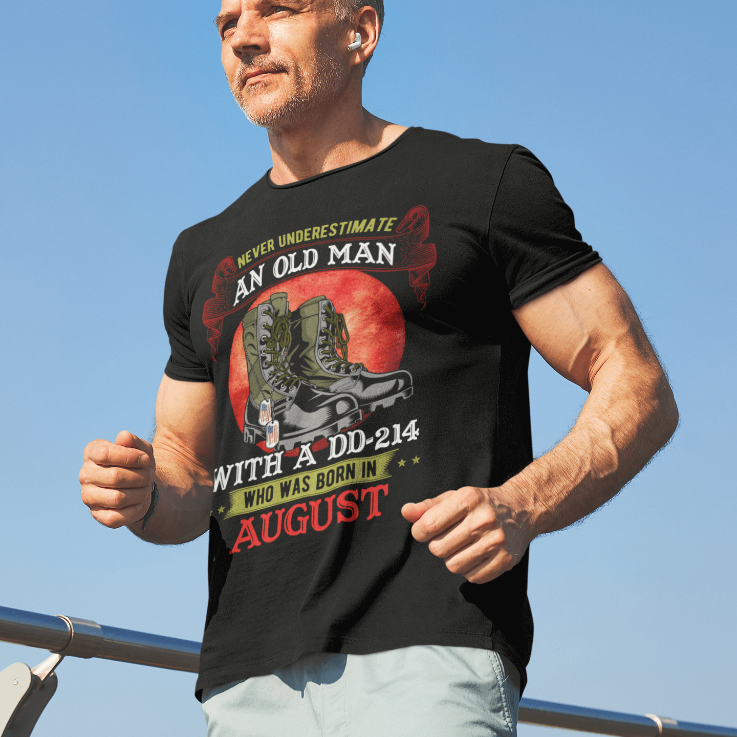 Never Underestimate An Old Man With A DD-214 Who Was Born In August T-Shirt – August Veteran Gifts