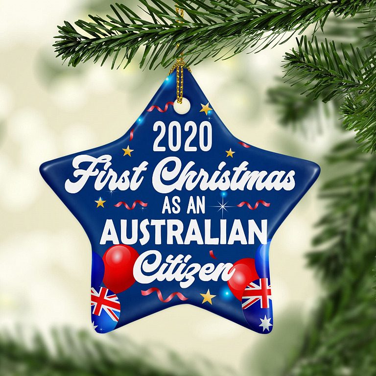 Let’s Shop Personalized First Christmas As An Australia Citizen Holiday Flat Star Porcelain Ceramic Ornament Keepsake!