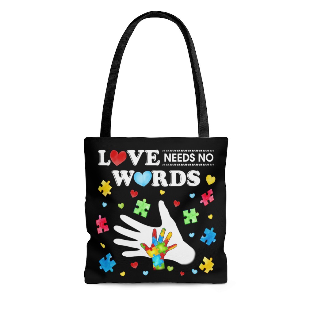 Shop Love Needs No Words Autism Awareness All Over Print Tote Bag – Shoulder Bag.