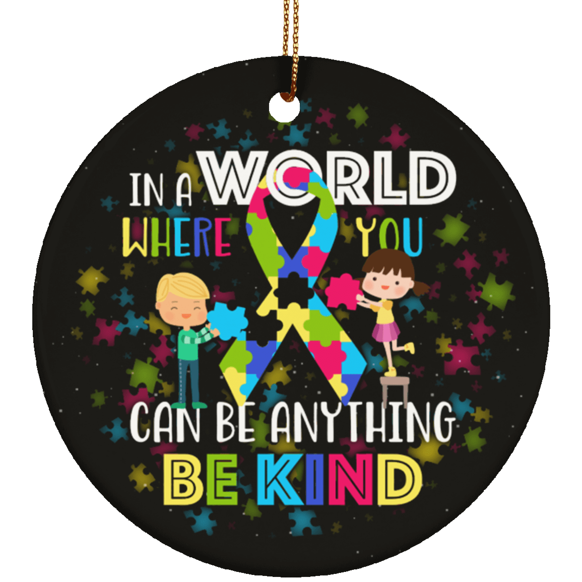 Shop In A World Where You Can Be Anything Be Kind Autism Decorative Flat Circle Porcelain Ceramic Ornament Keepsake.