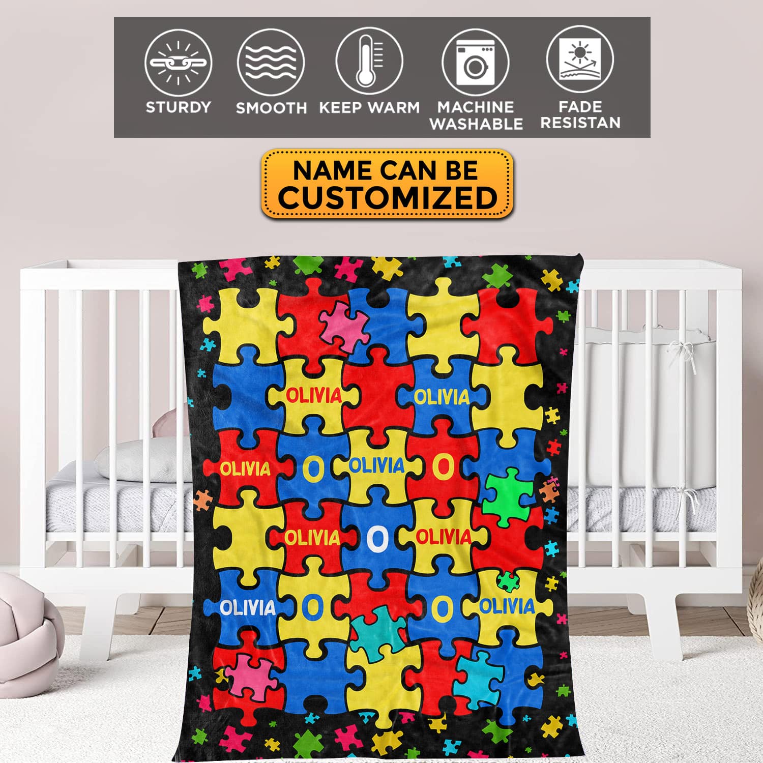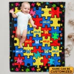 Let’s Shop Personalized Name Autism Blanket Puzzle Cure Awareness Flannel Throw Gift for Childs Teens Adults Super Soft Convenient Comfortable Bed Sofa Couch!