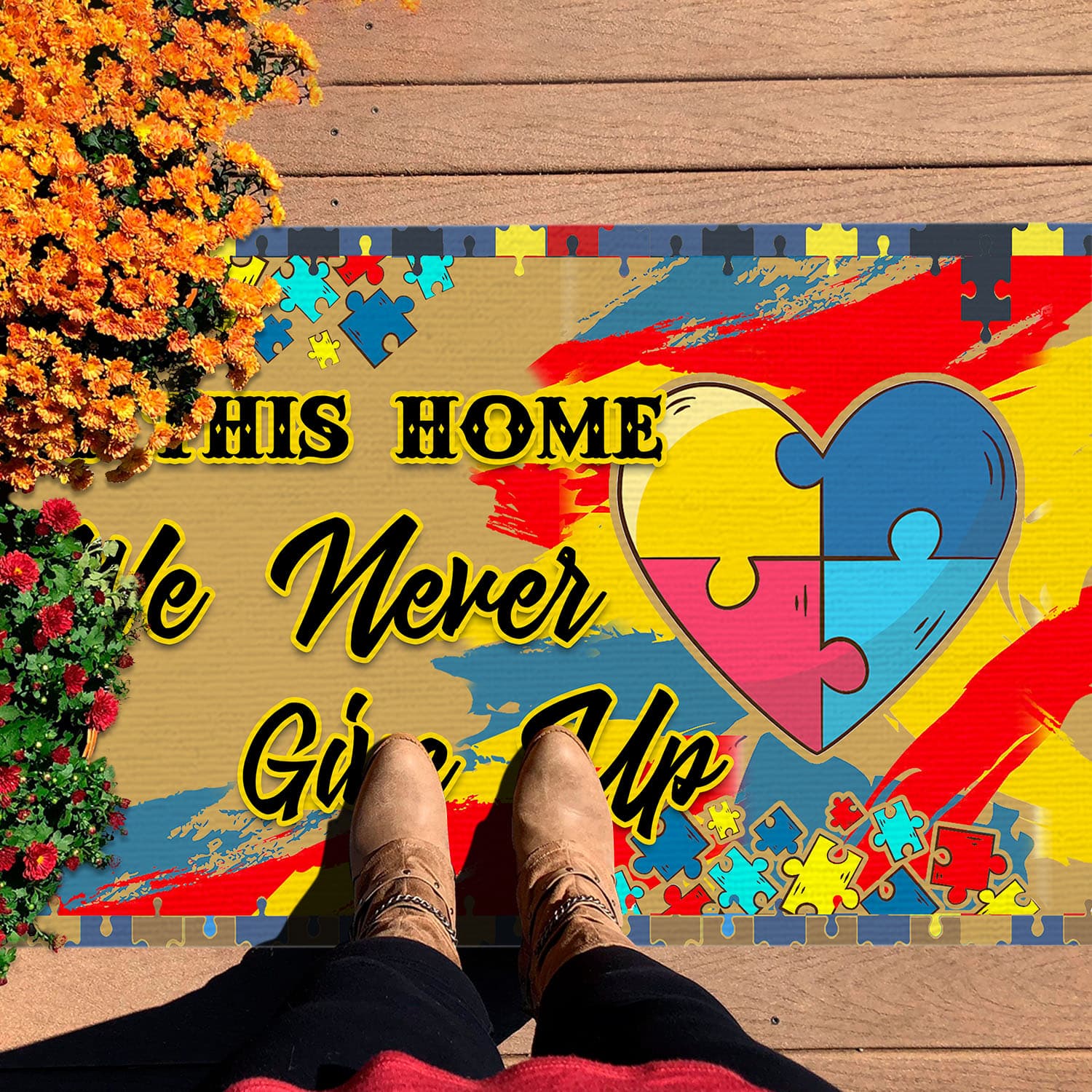 Are you spending too much time to find creative merchandise for you or suitable & special gifts for your mommy, your daddy, your son, your daughter, your children, your friends or someone you love? The struggle is over because we have various In This House We Never Give Up, in This House We Never Give up Doormat, Autism Awareness, Autism Awareness Doormat, Autism Awareness Gift, It’s Ok to Be Different, Proud Autism Dad, Autism Dad, Autism Dad Doormat, Autism Mom, Autism Awareness Doormat, Parents of Children with Autism, Autism Family, Autism and Family, Dealing with Autism which will make perfect presents for your beloveds. In order to make your present stand out, we have created lots of unique and awesome customized photo gifts & personalized designs.