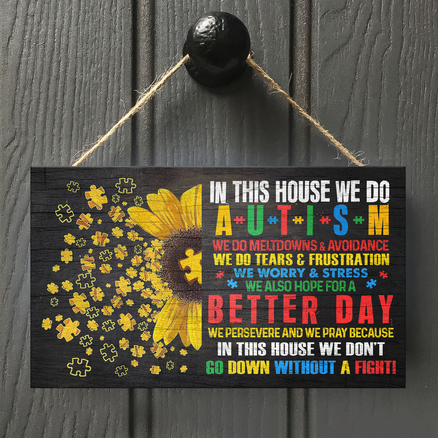 Let’s Shop In This House We Do Autism We Do Meltdowns And Avoidance Decorative Rectangle Wooden Door Sign!