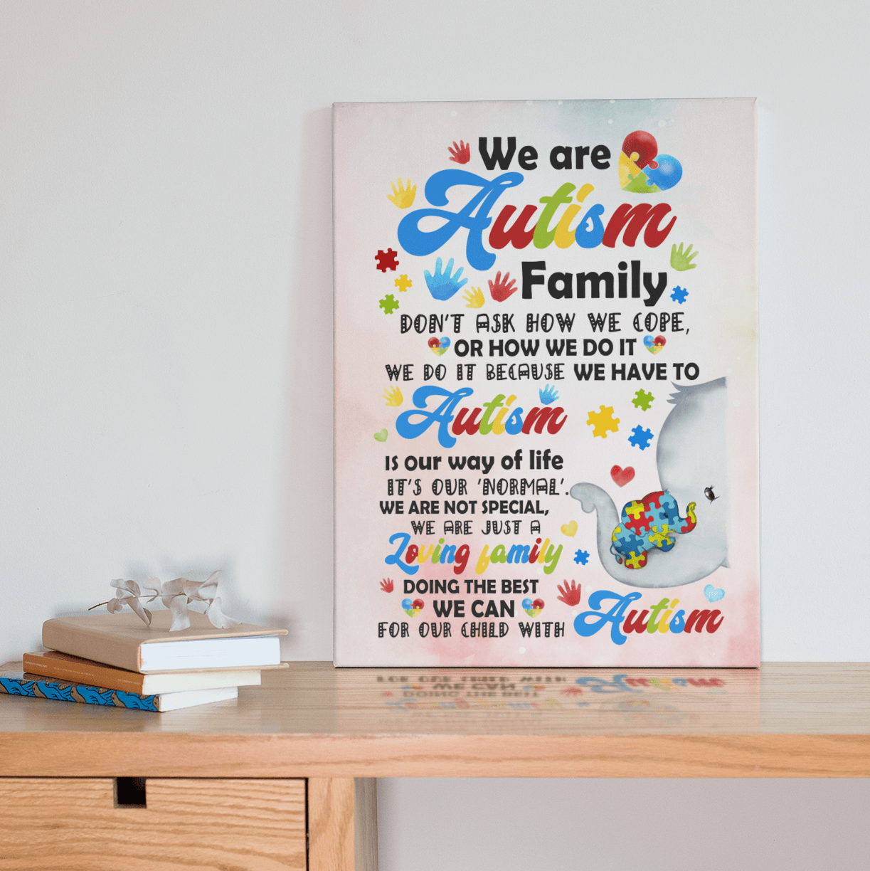 We Are Autism Family Don’t Ask How We Cope – Autism Awareness Wall Art Framed Canvas – Unframed Poster