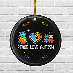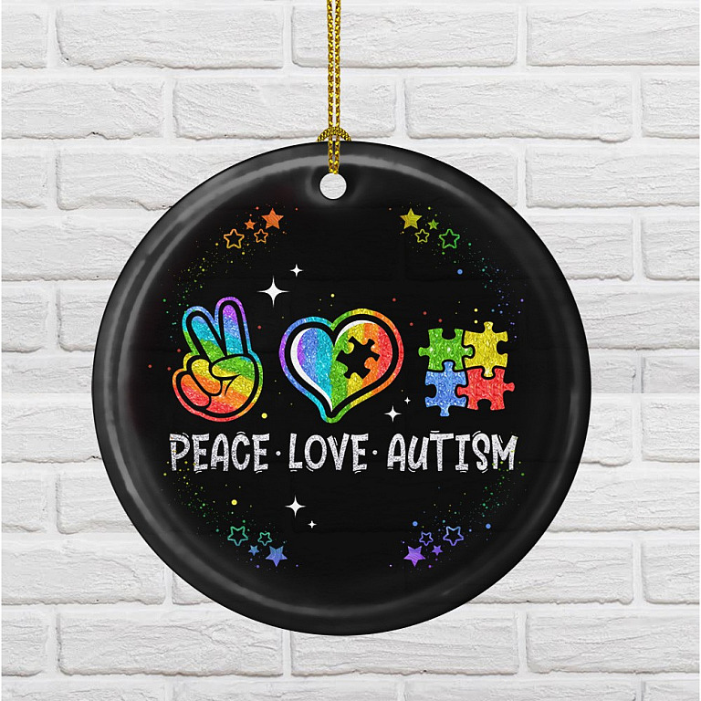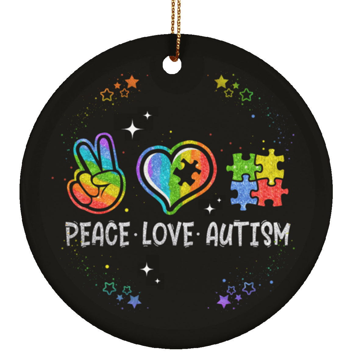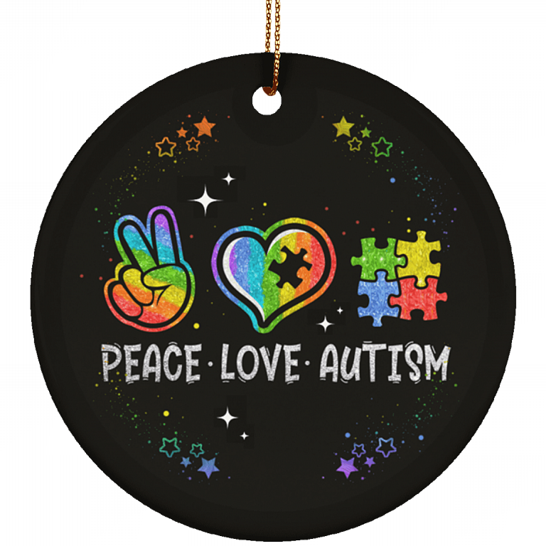 Shop Peace Lover Autism Ornament Keepsake – Circle Porcelain Ceramic Ornament – Autism Gifts.
