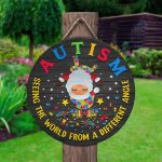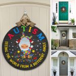 Let’s Shop Autism Seeing The World From A Different Angle Cute Santa Claus Decorative Circle Wooden Door Sign – Front Porch Sign!
