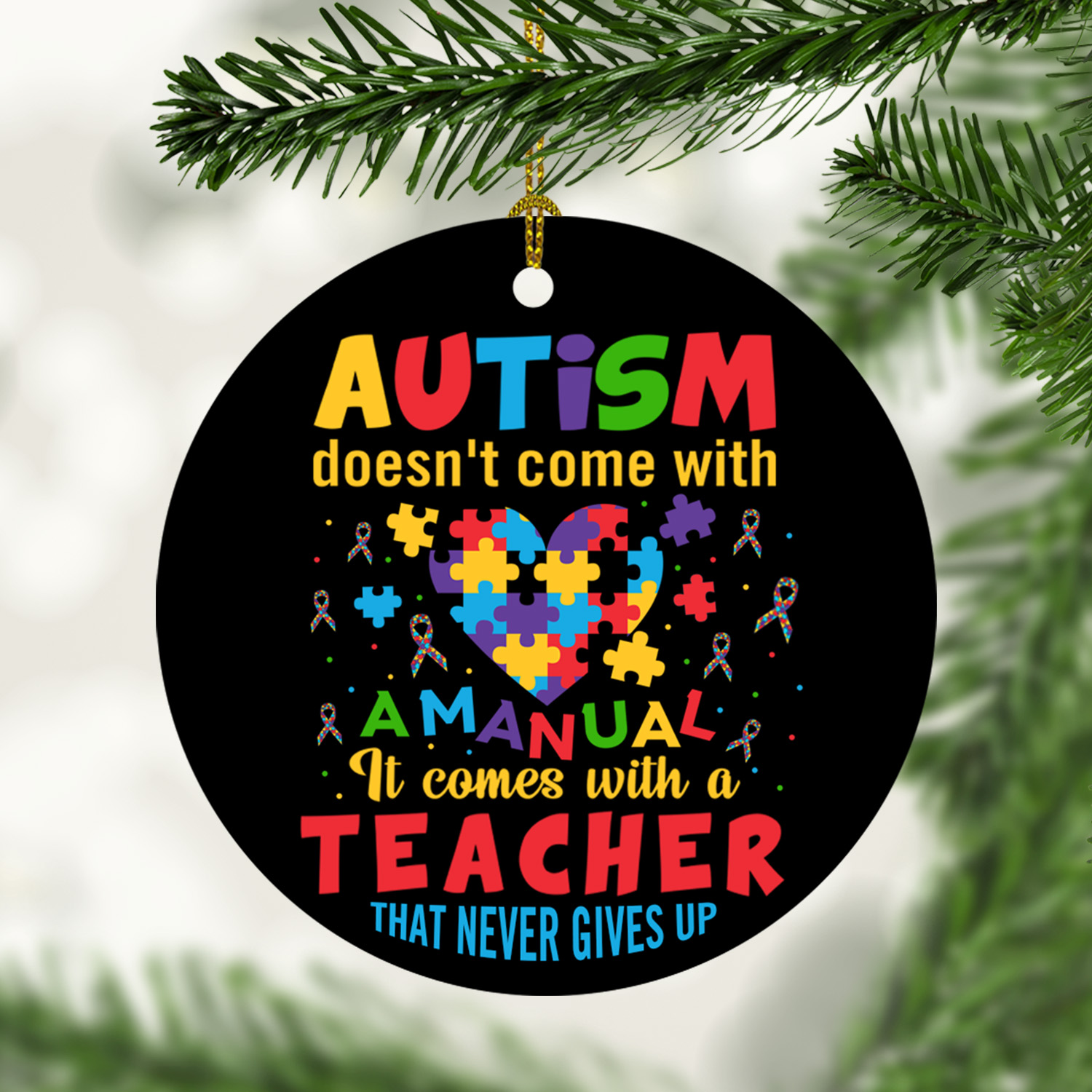 Let’s Shop Autism Doesn’t Come With A Manual Teacher Decorative Christmas Ornament – Holiday Flat Circle Ornament!