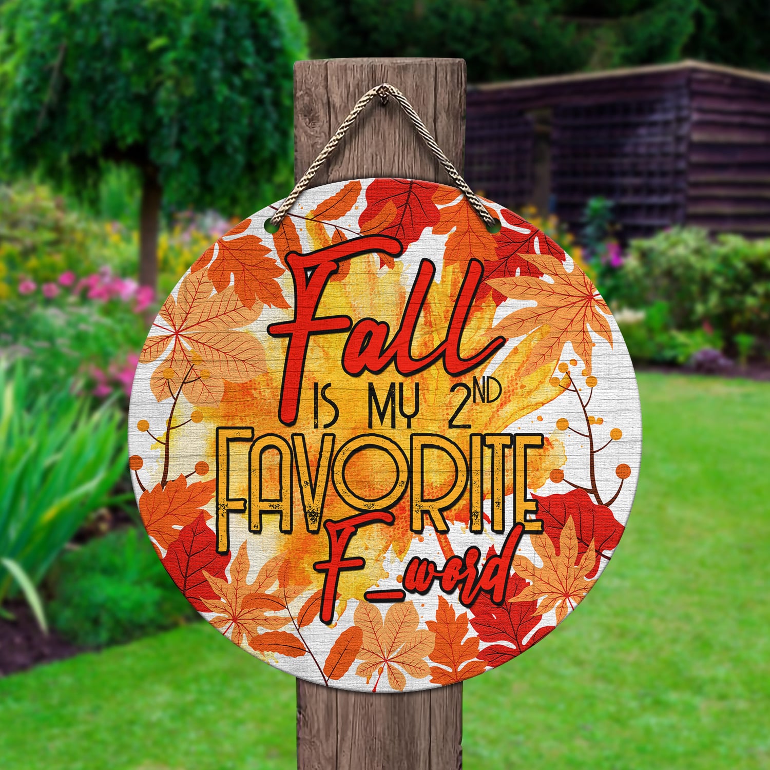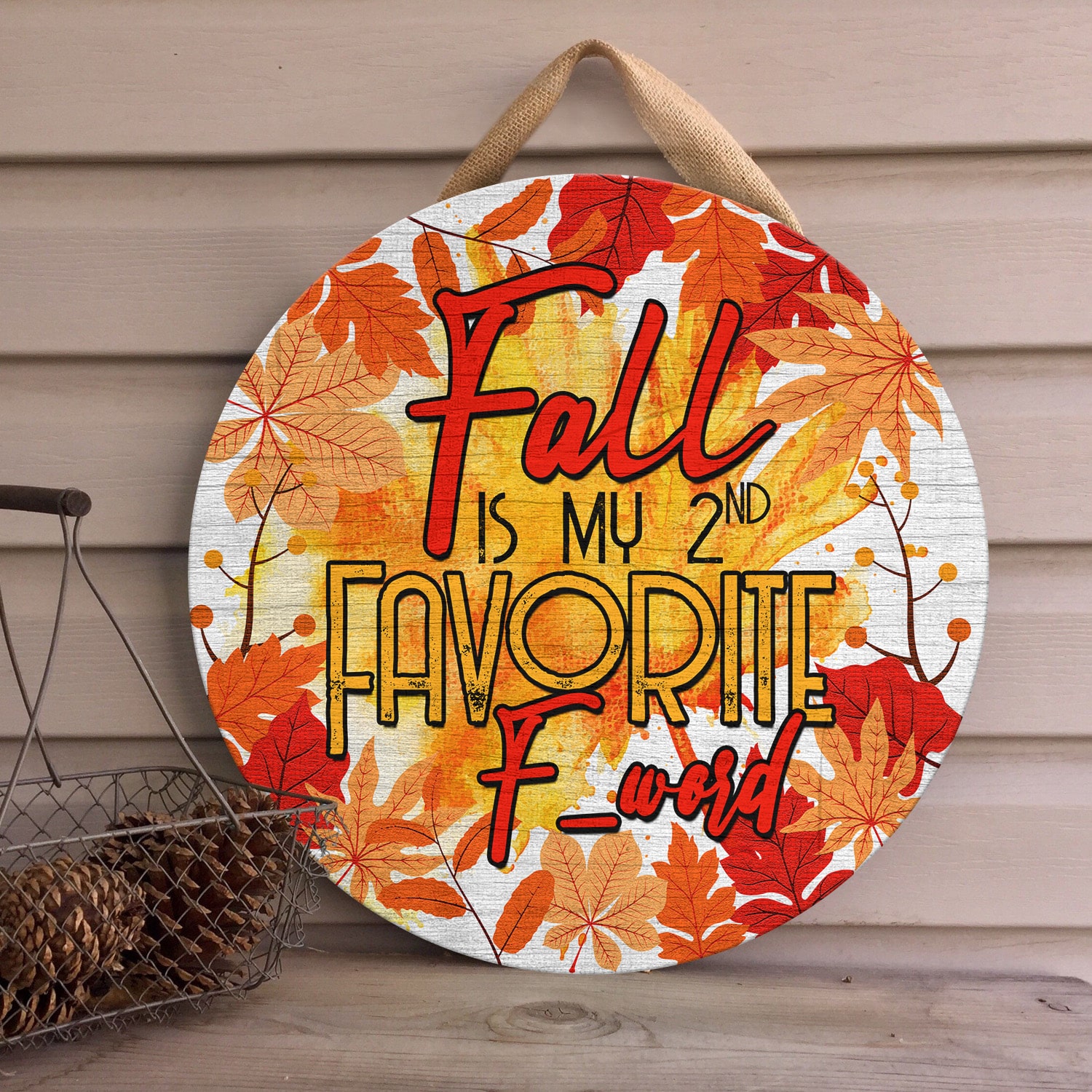 Let’s Shop Fall Is My 2nd Favorite F Word Decorative Circle Wooden Door Sign – Front Porch Sign Outdoor Decor Halloween Farmhouse!