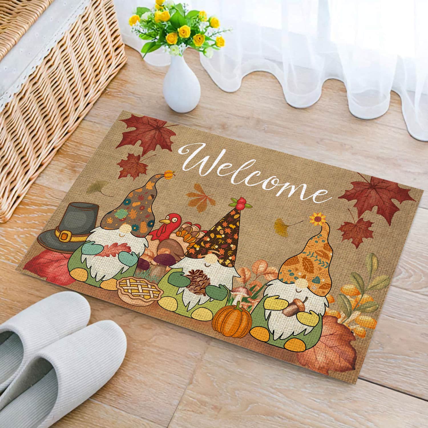 Let’s Shop Welcome Autumn Gnome Outdoor Indoor Doormat – Seasonal Fall Harvest Thanksgiving Door Mat – Welcome Rug!