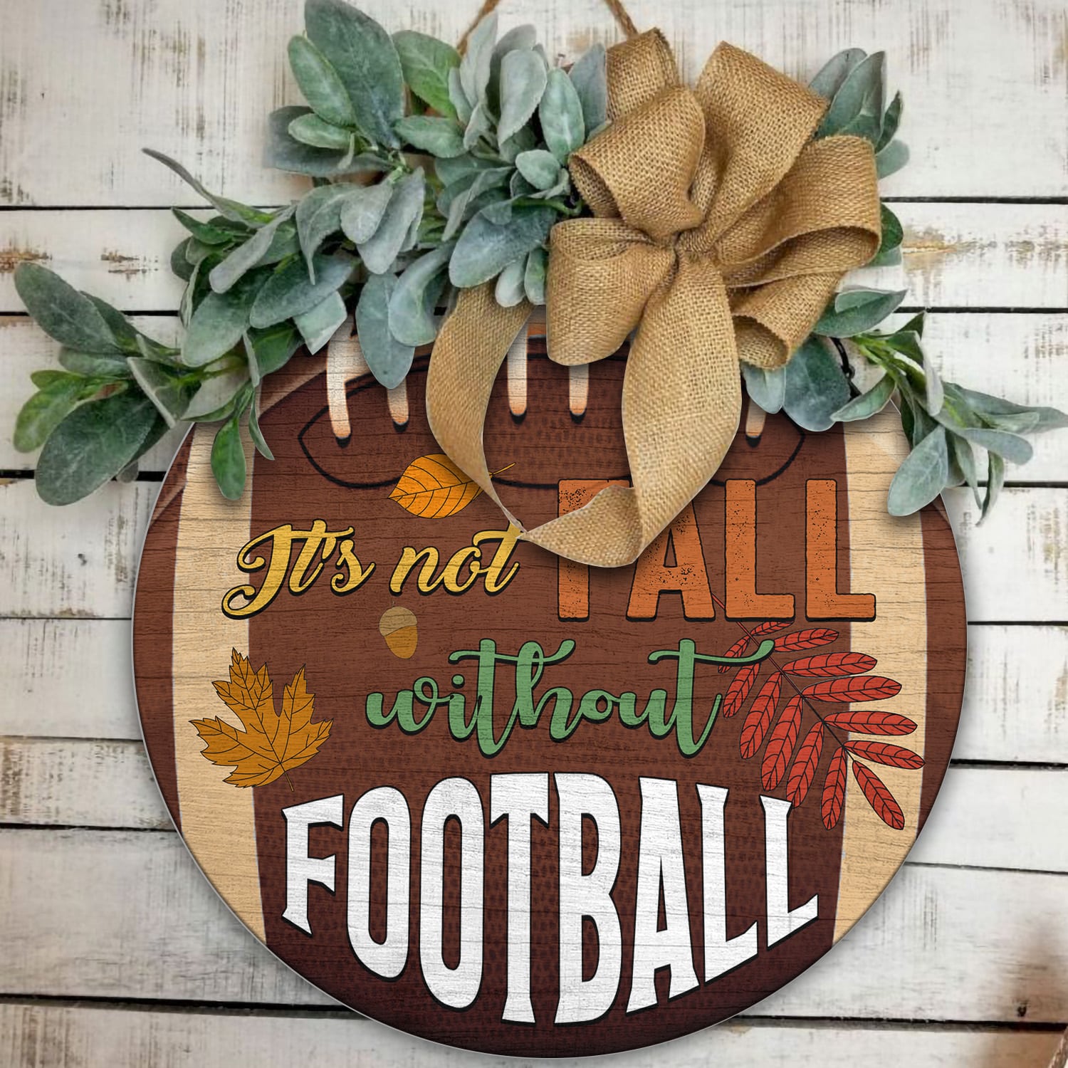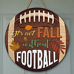 Let’s Shop It’s Not Fall Without Football Decorative Circle Wooden Door Sign – Football Fall Y’all Pumpkin Front Porch Sign Indoor Outdoor Decor!