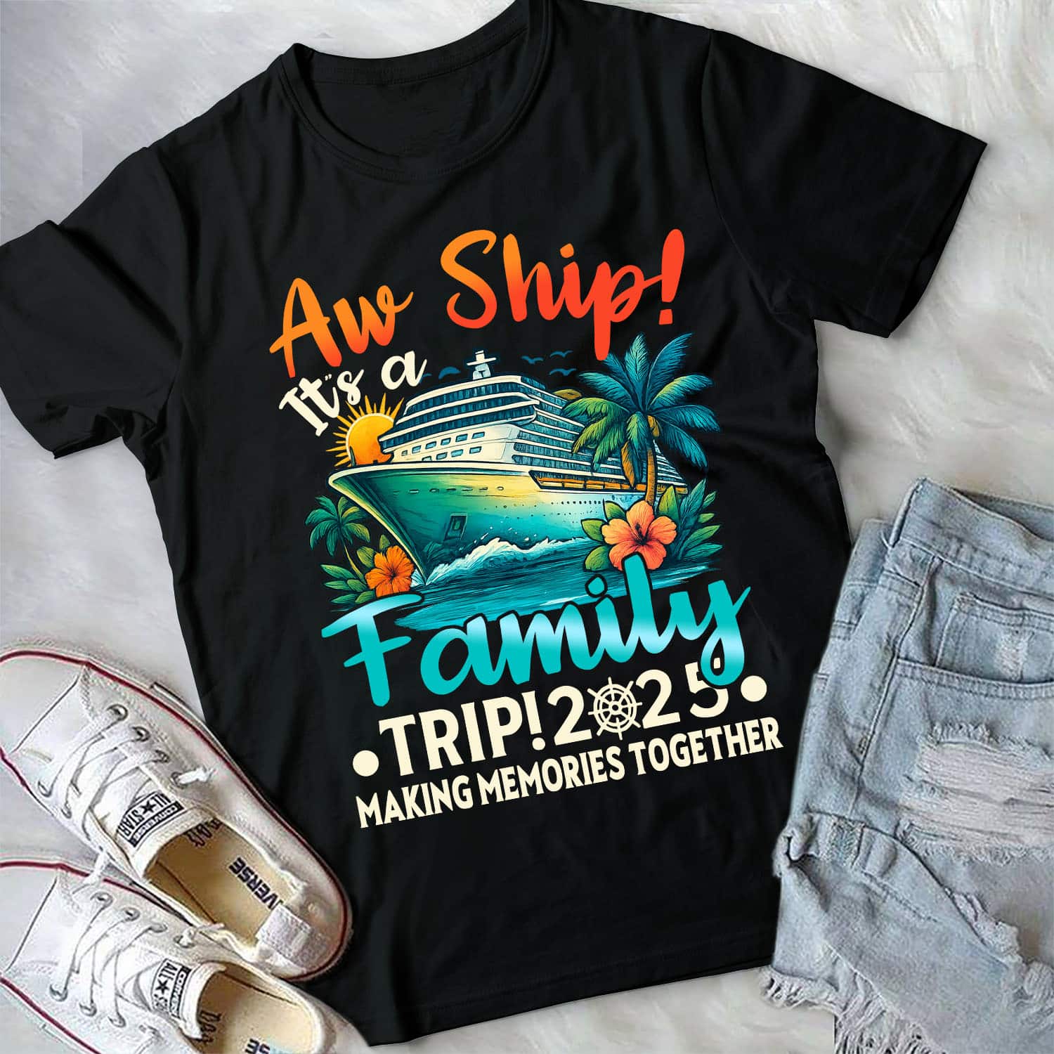 Aw Ship It’s A Family Trip 2025 Making Memories Together Matching Cruise Trip T-Shirt – V-Neck – Youth Shirt