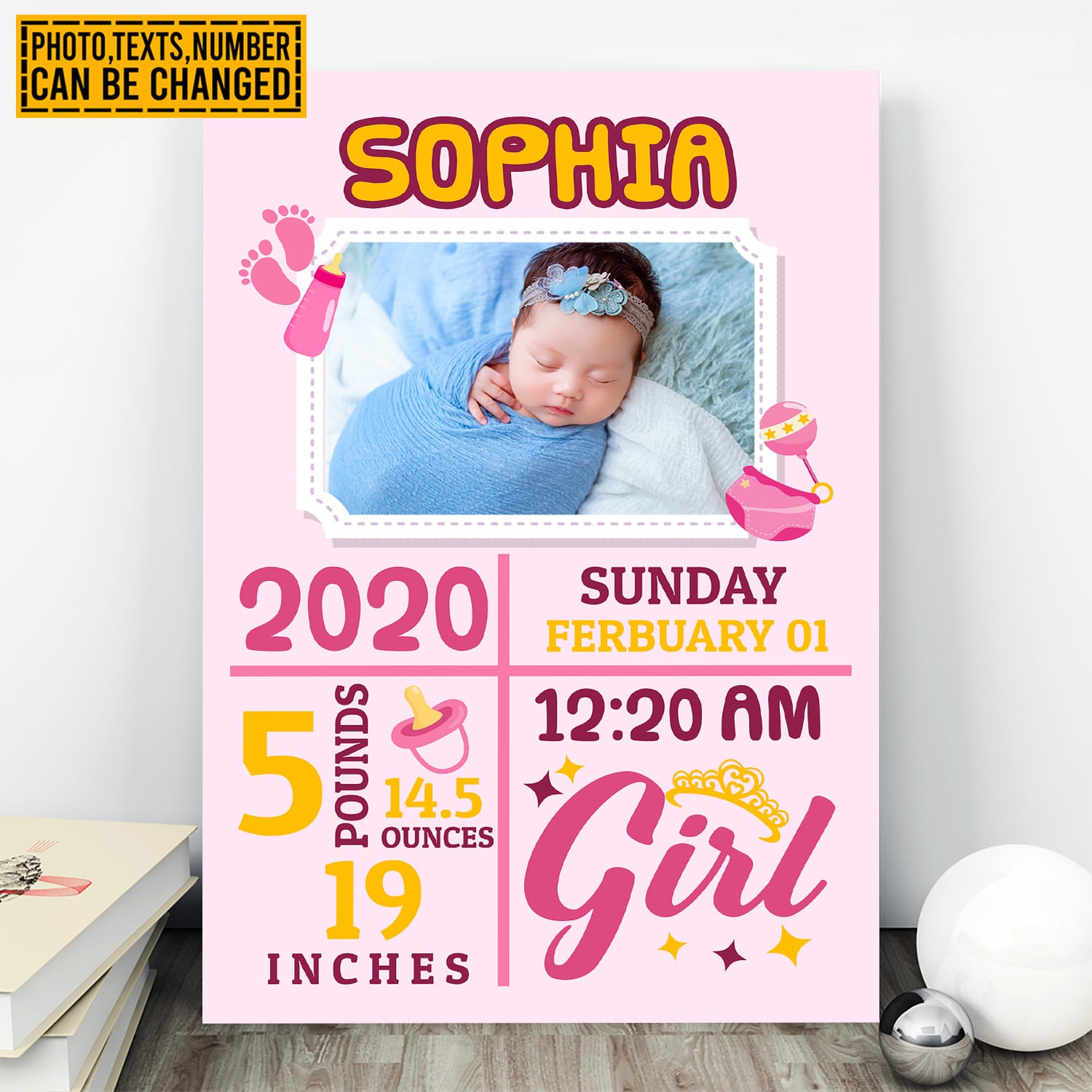 Let’s Shop Custom Photo Baby Birth Stats Gallery Wrapped Framed Canvas Print – Home Decor Wall Art – Poster!
