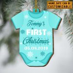 Let’s Shop Personalized Baby Boy Bodysuit First Christmas Decorative Custom Shaped Wooden Christmas Ornament Keepsake!