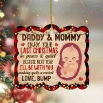 Let’s Shop Daddy Mommy Enjoy Your Last Christmas Baby Bump First Christmas Shaped Wooden Christmas Ornament!