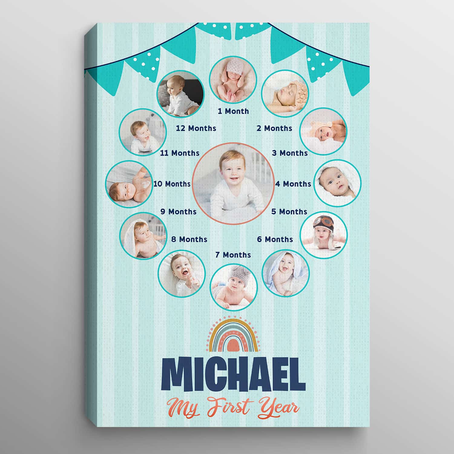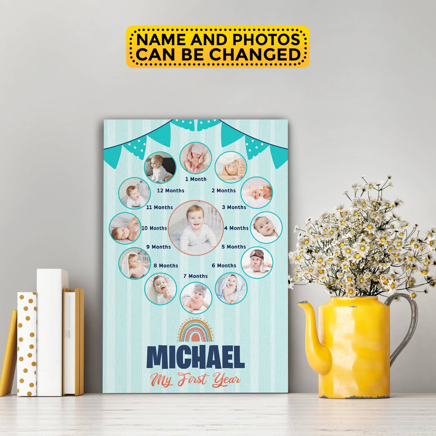 Let’s Shop Personalized Baby First Year Photo Canvas Wall Art Decor – Custom Photo & Name Baby 12 Months Poster Decor!