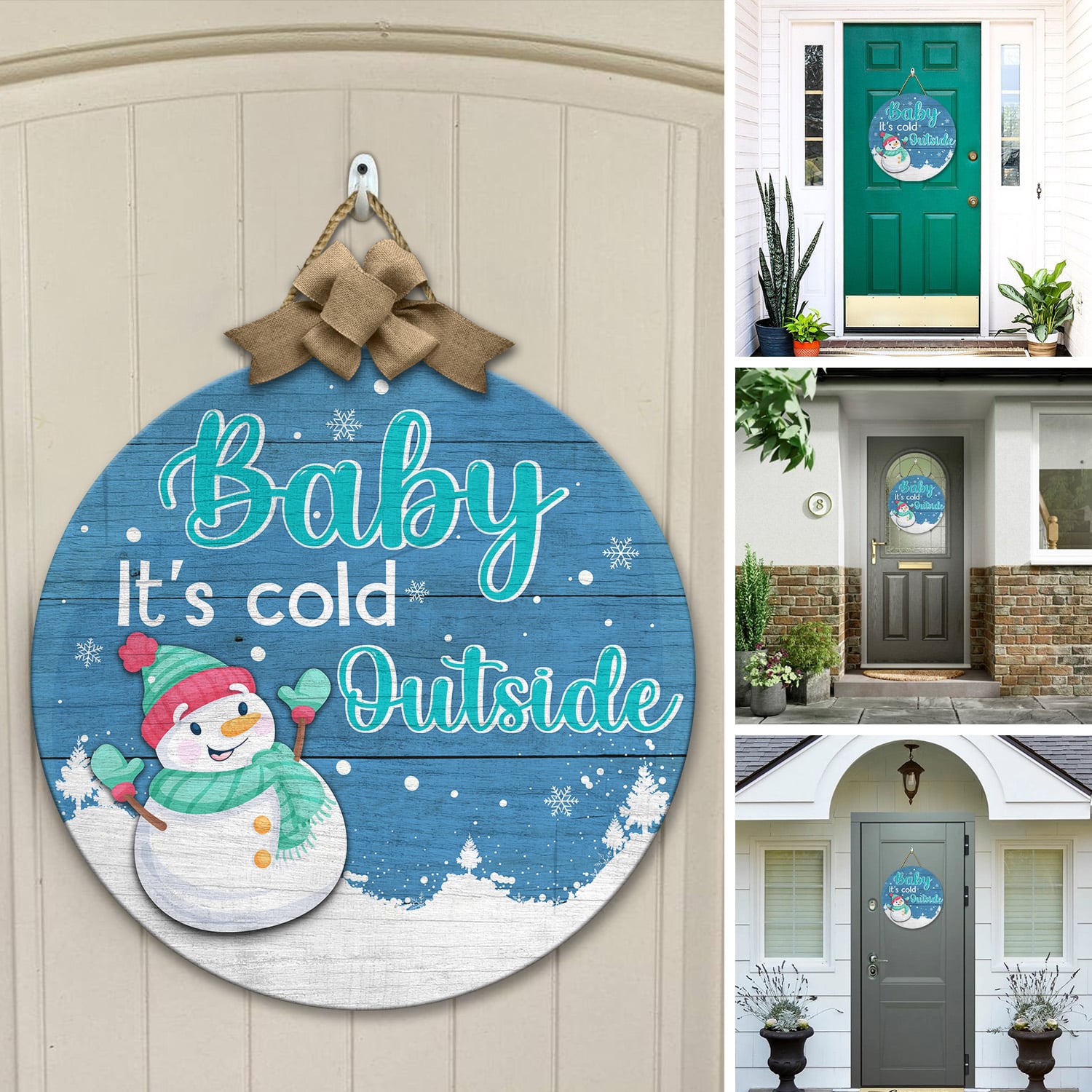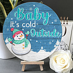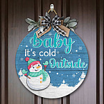 Let’s Shop Snowman Baby It’s Cold Outside Decorative Circle Wooden Door Sign – Front Porch Sign Indoor Outdoor Decor Farmhouse!