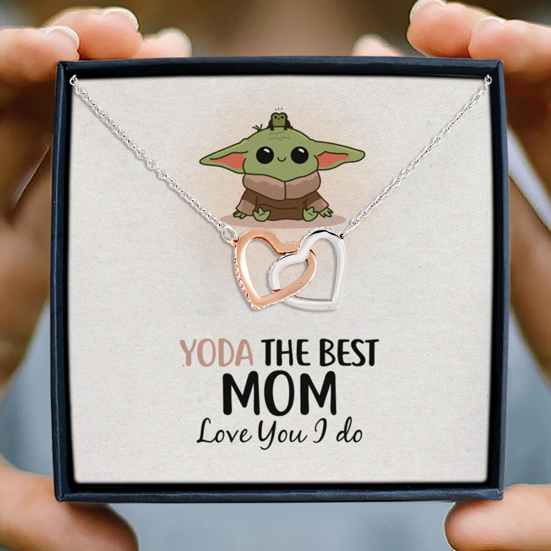 Let’s Shop Baby Yoda The Best Mom In The Galaxy Love You I Do Mother’s Day Interlocking Hearts Pendant Necklace!