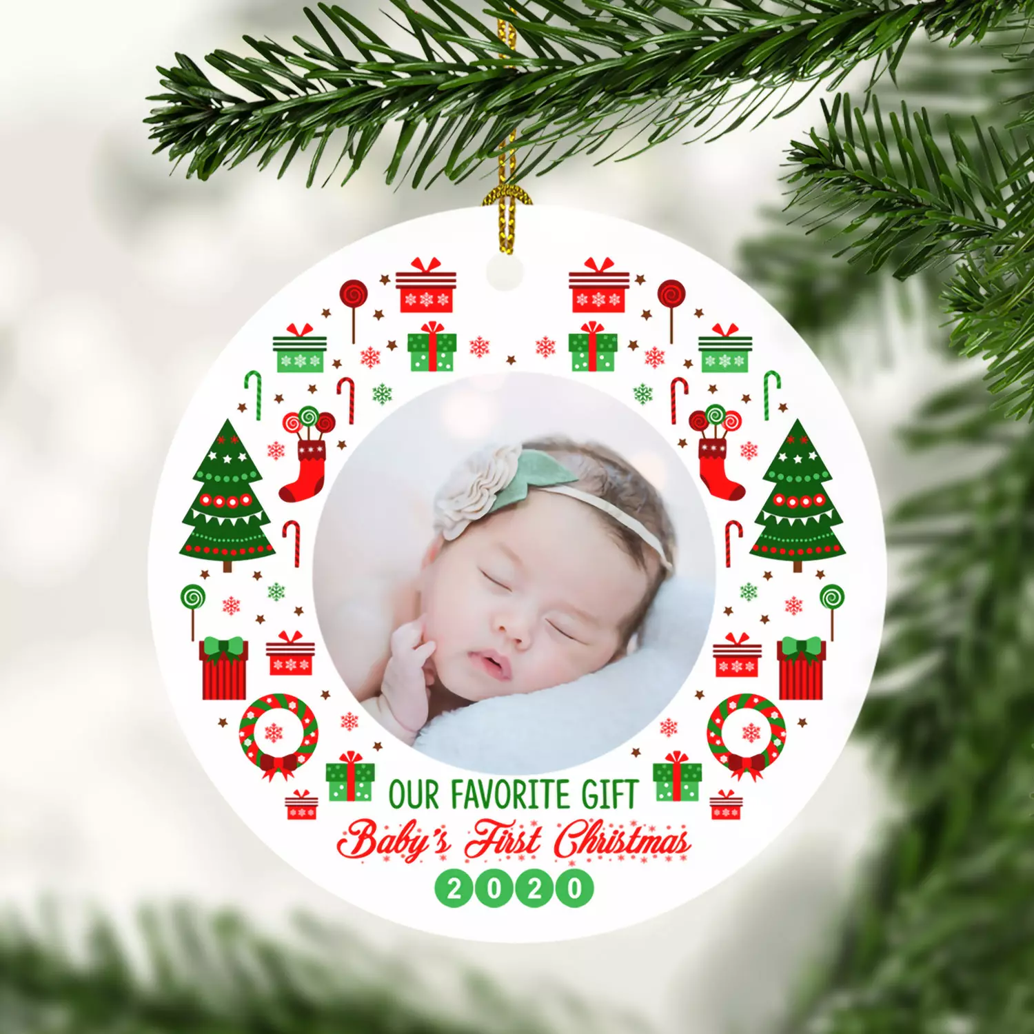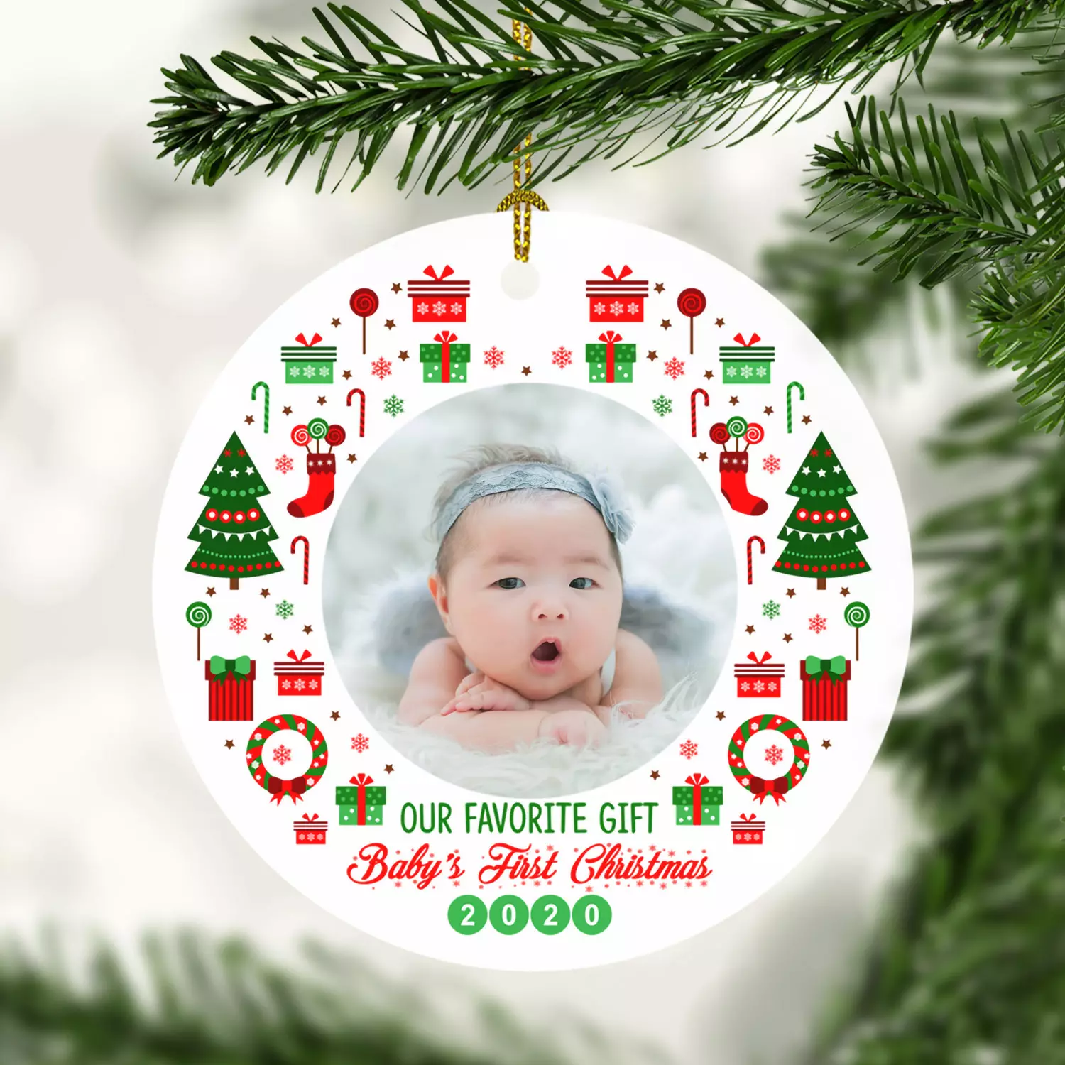 Let’s Shop Personalized Custom Photo New Baby Our Favorite Gift Baby 1st Christmas Baby’s Picture Frame Circle Ornament!