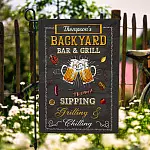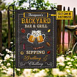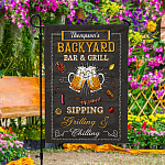 Let’s Shop Personalized Backyard Bar And Grill Garden Flag – Custom Family Name Sipping Grilling Chilling BBQ Party House Flag!