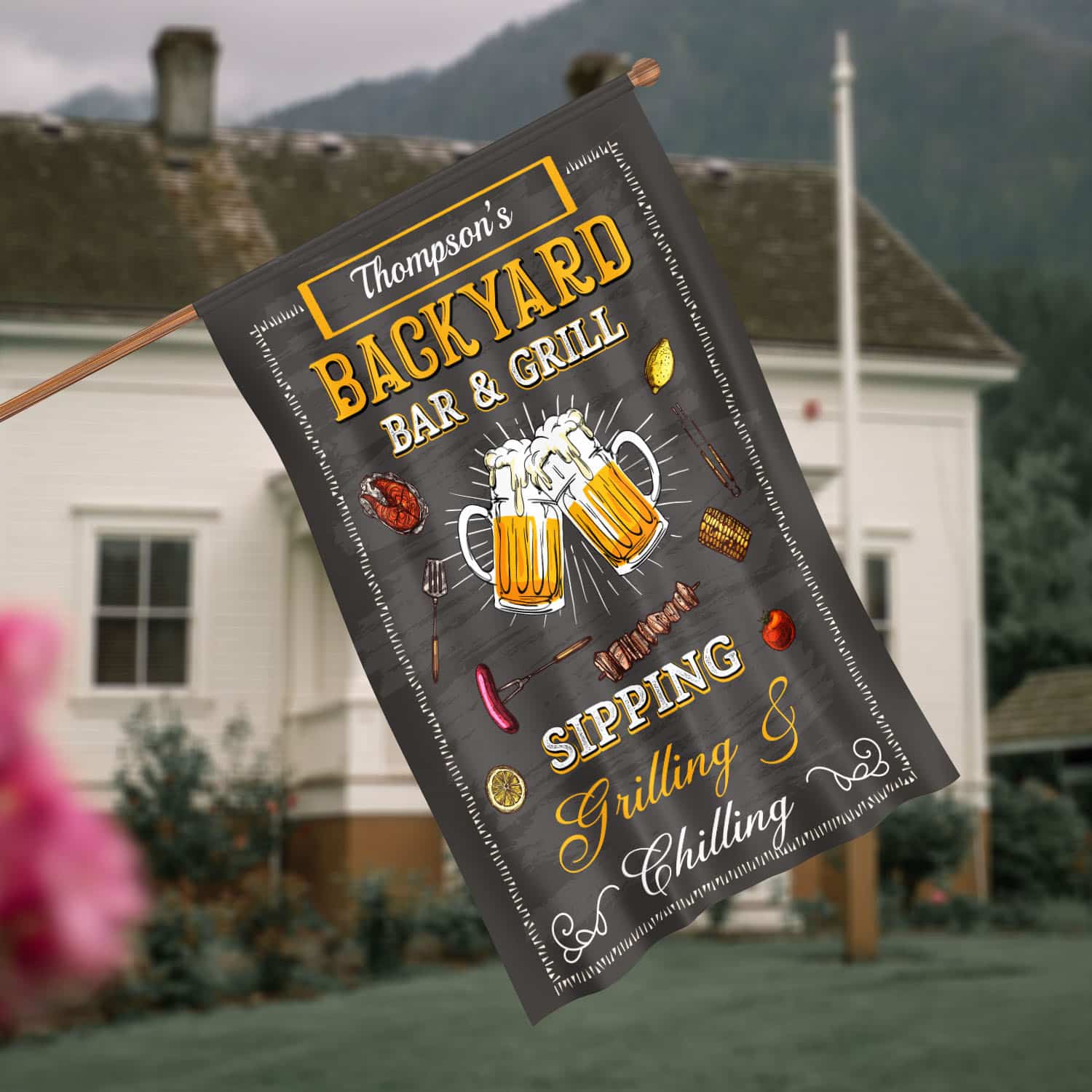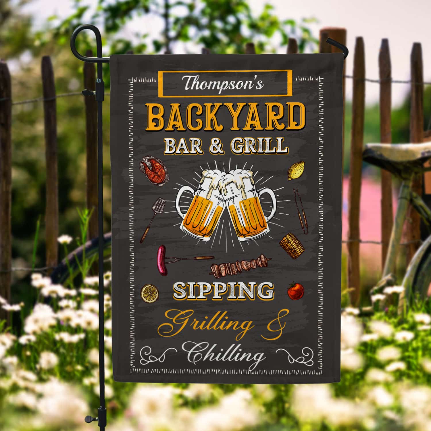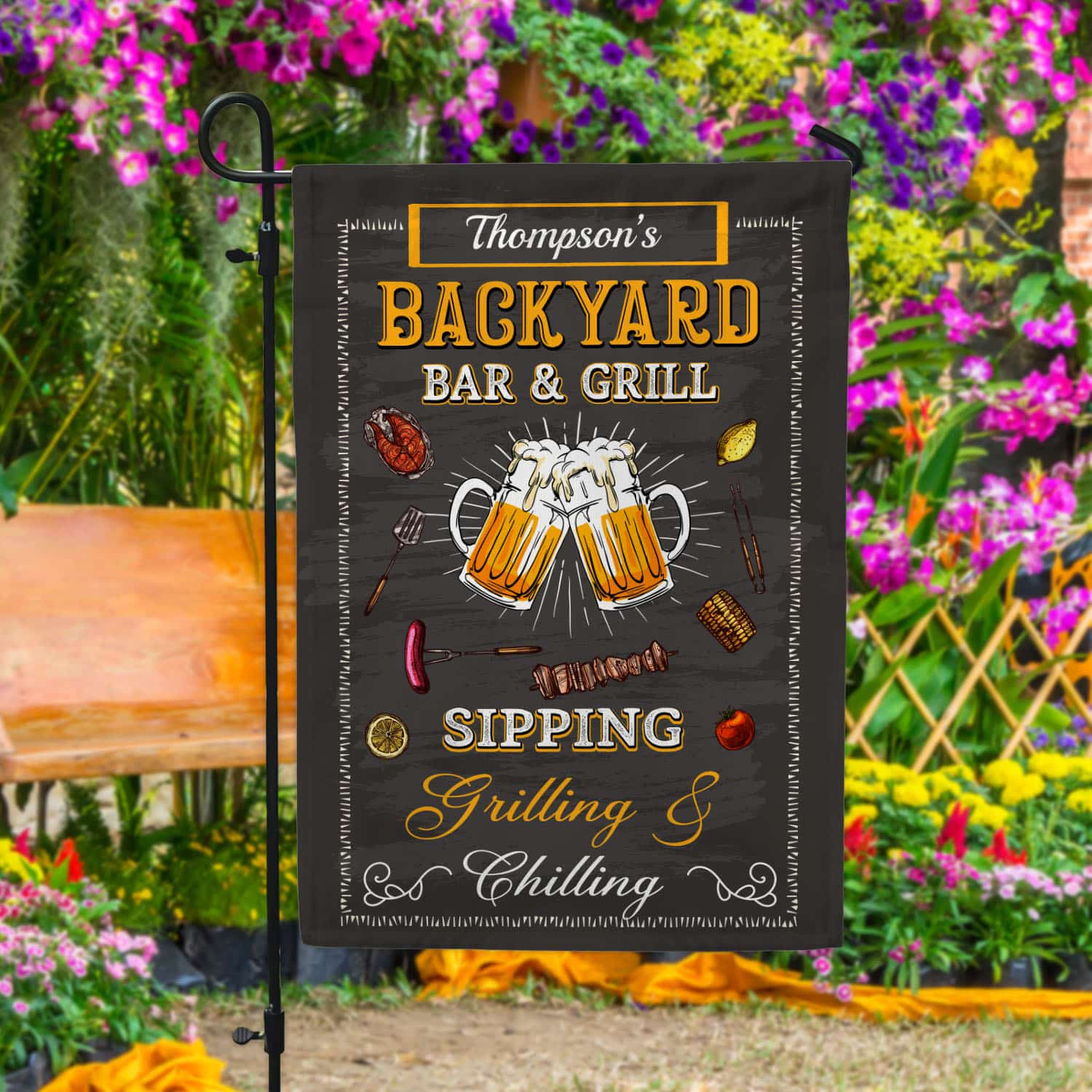 Are you spending too much time to find creative merchandise for you or suitable & special gifts for your mommy, your daddy, your son, your daughter, your children, your friends or someone you love? The struggle is over because we have various Bar and Grill Flag, Backyard Bar and Grill Flag, Personalized Backyard Bar and Grill Flags, Grilling and Chilling Garden Flag, Grilling Garden Flag, Barbeque Garden Flag, BBQ Party Flags, Bar and Grill Decor, Bar and Grill Sign Personalized, Bar and Grill Sign, Bar and Grill Sign Outdoor, Bar & Grill Flag which will make perfect presents for your beloveds. In order to make your present stand out, we have created lots of unique and awesome customized photo gifts & personalized designs.