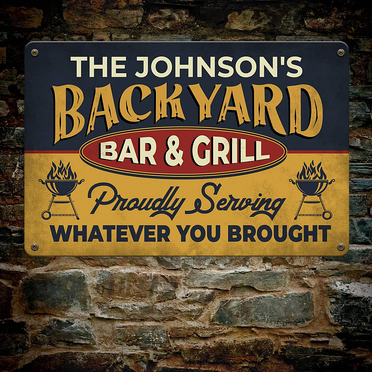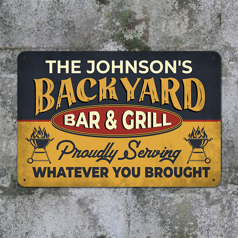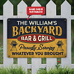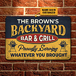 Let’s Shop Bar Sign Personalized Backyard Bar and Grill Proudly Serving Whatever You Brought Vintage Decorative Metal Sign!