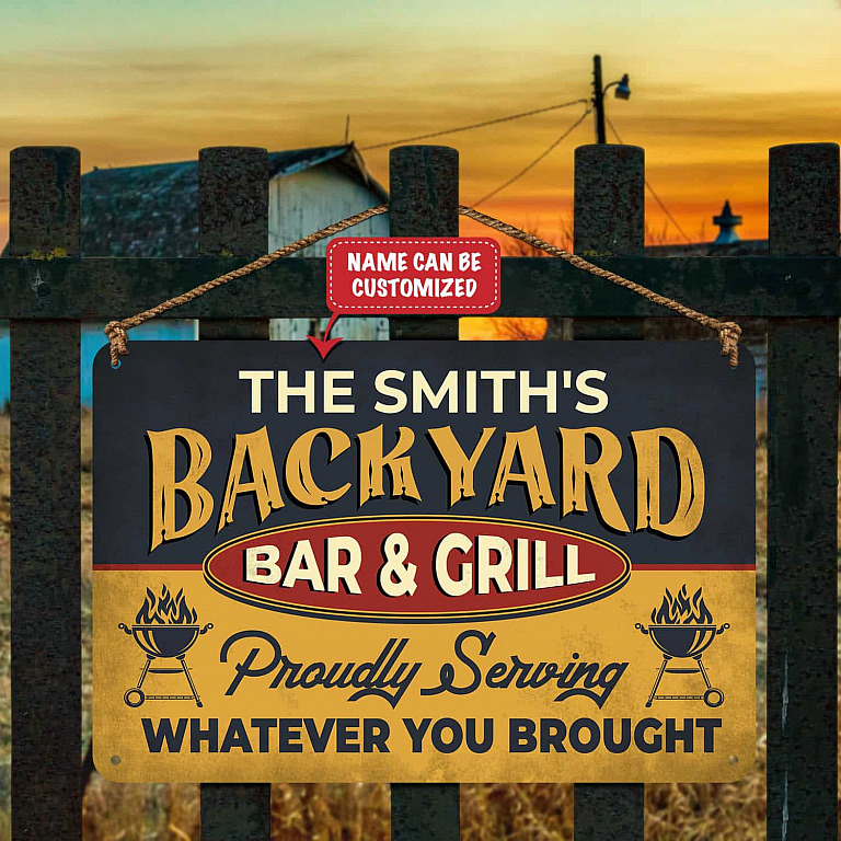 At CubeBik, besides custom decorative metal signs, we also offer tees, hoodies, sweaters, raglans, tanks, wall arts, canvases, posters, mugs, blankets, engraved jewelry, personalized necklaces, flags, throw pillows, tote bags, hats, accessories and more on our website, so do not miss our other Backyard Bar and Grill Proudly Serving Whatever You Brought, Backyard Decor, Bar Sign Personalized, Beer Wine Shots Every Hour Is Happy Hour, Bar Sign, Tavern Sign, Custom Bar Sign, Personalized Bar Sign, Custom Pub Sign, Antique Bar Sign related merchandise. Moreover, all the products are made-to-order and one of a kind custom designs you can’t get elsewhere in normal stores. Let’s discover CubeBik.com now and find your favorite personalized items. We can’t wait to surprise and build beautiful memories with you and your loved ones.