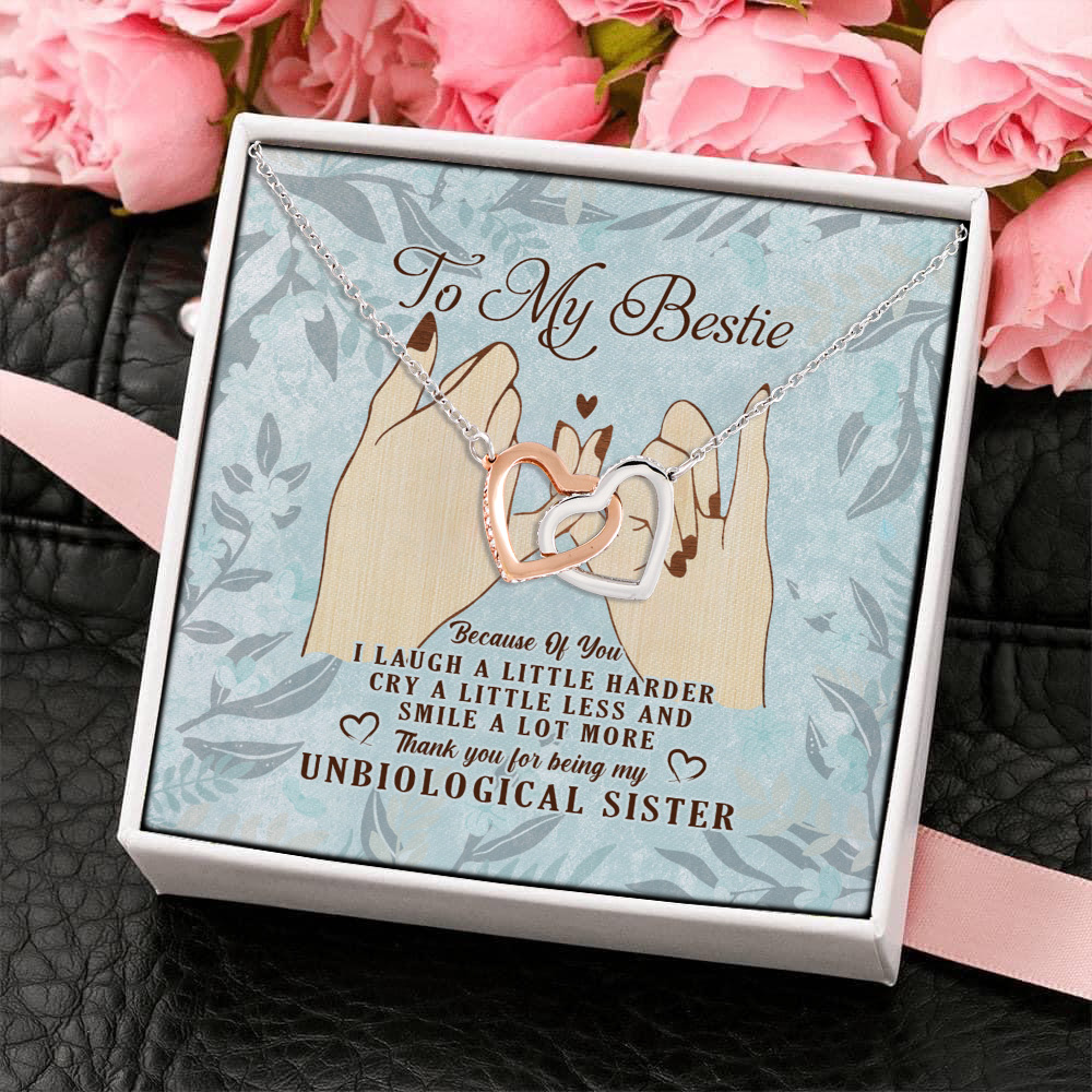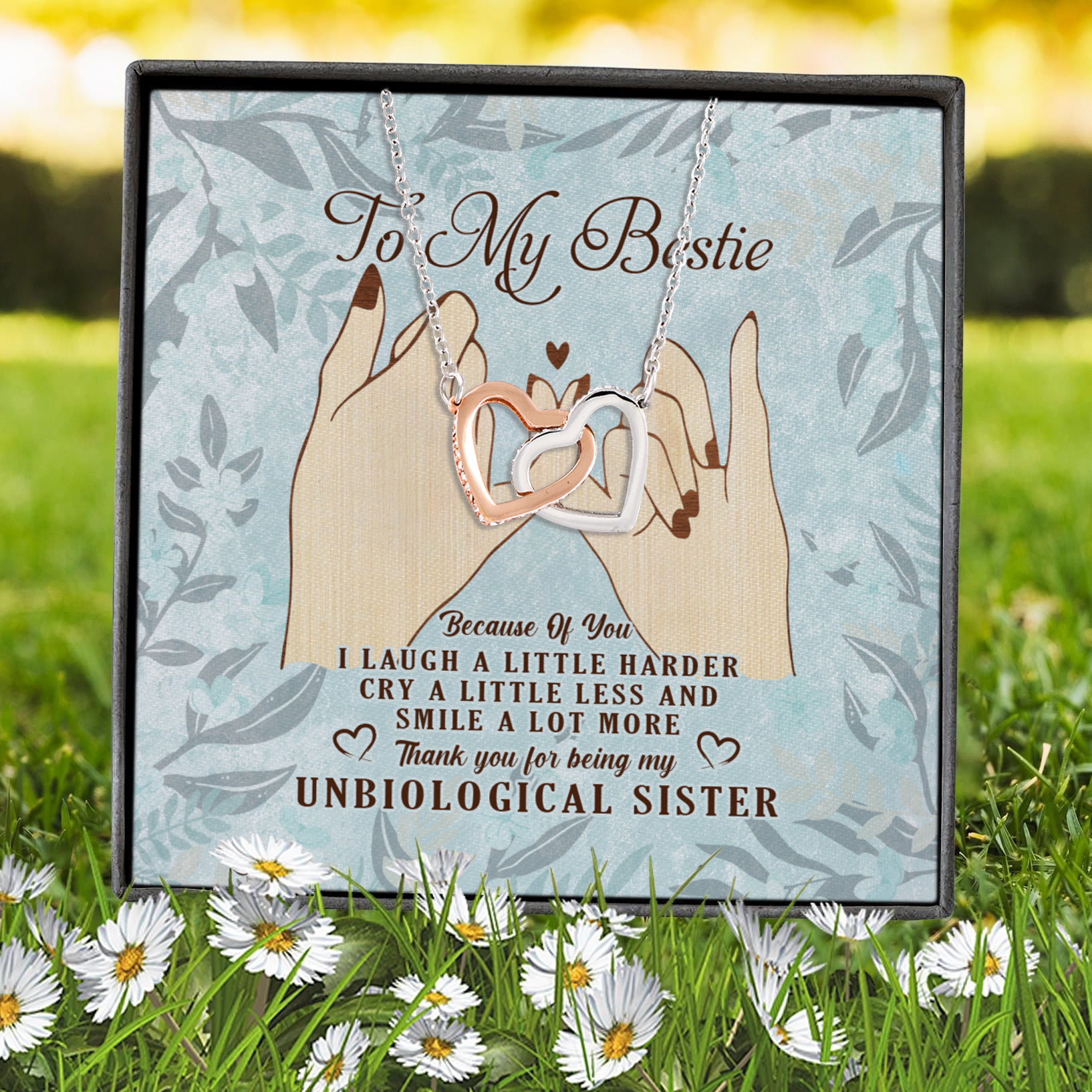 Let’s Shop To My Hand In Hand Bestie Laugh Cry Smile For Being My Unbiological Soul Sister Interlocking Hearts Necklace!