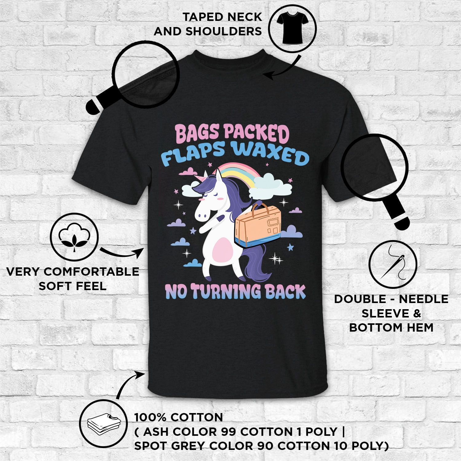At CubeBik, besides custom apparel, we also offer tees, hoodies, sweaters, raglans, tanks, wall arts, canvases, posters, mugs, blankets, engraved jewelry, personalized necklaces, printed face masks, throw pillows, tote bags, hats, accessories and more on our website, so do not miss our other Bags Packed Flaps Waxed Tshirt, Bags Packed Flaps Waxed No Turning Back Shirt, Bags Packed Flaps Waxed Shirt, Unicorn Summer Shirt, Funny Unicorn Vacation Shirt, Unicorn Vacation Shirt. Moreover, all the products are made-to-order and one of a kind custom designs you can’t get elsewhere in normal stores. Let’s discover CubeBik.com now and find your favorite personalized items. We can’t wait to surprise and build beautiful memories with you and your loved ones.