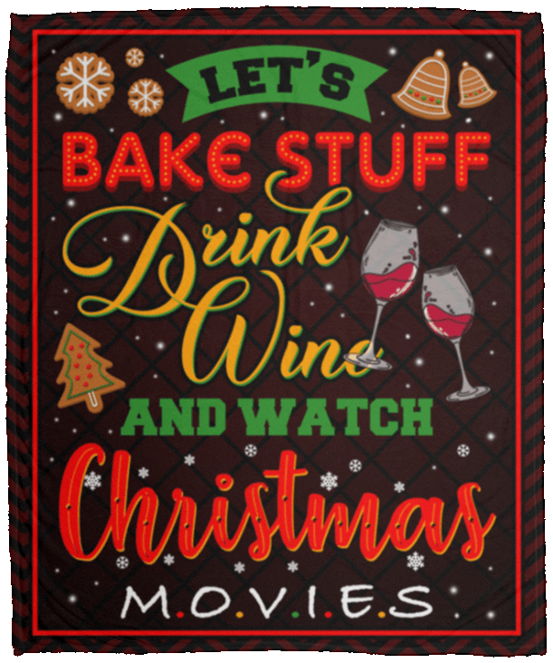 Shop Let’s Bake Stuff Drink Wine and Watch Christmas Movies Fleece Blanket – Premium Sherpa Blanket.