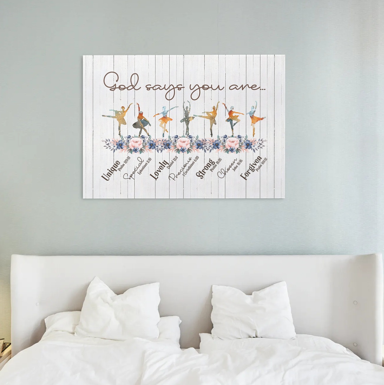 Let’s Shop Ballet God Says You Are Unique Special Lovely Framed Canvas Prints – Bible Verses Unframed Poster!