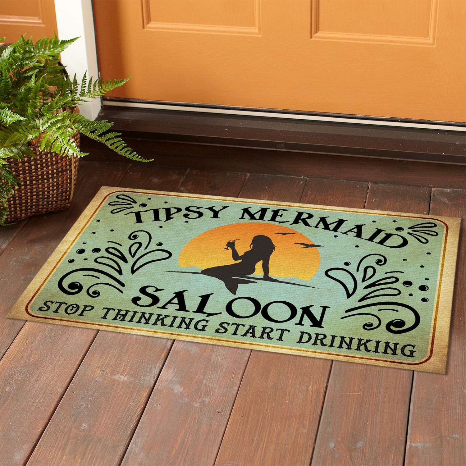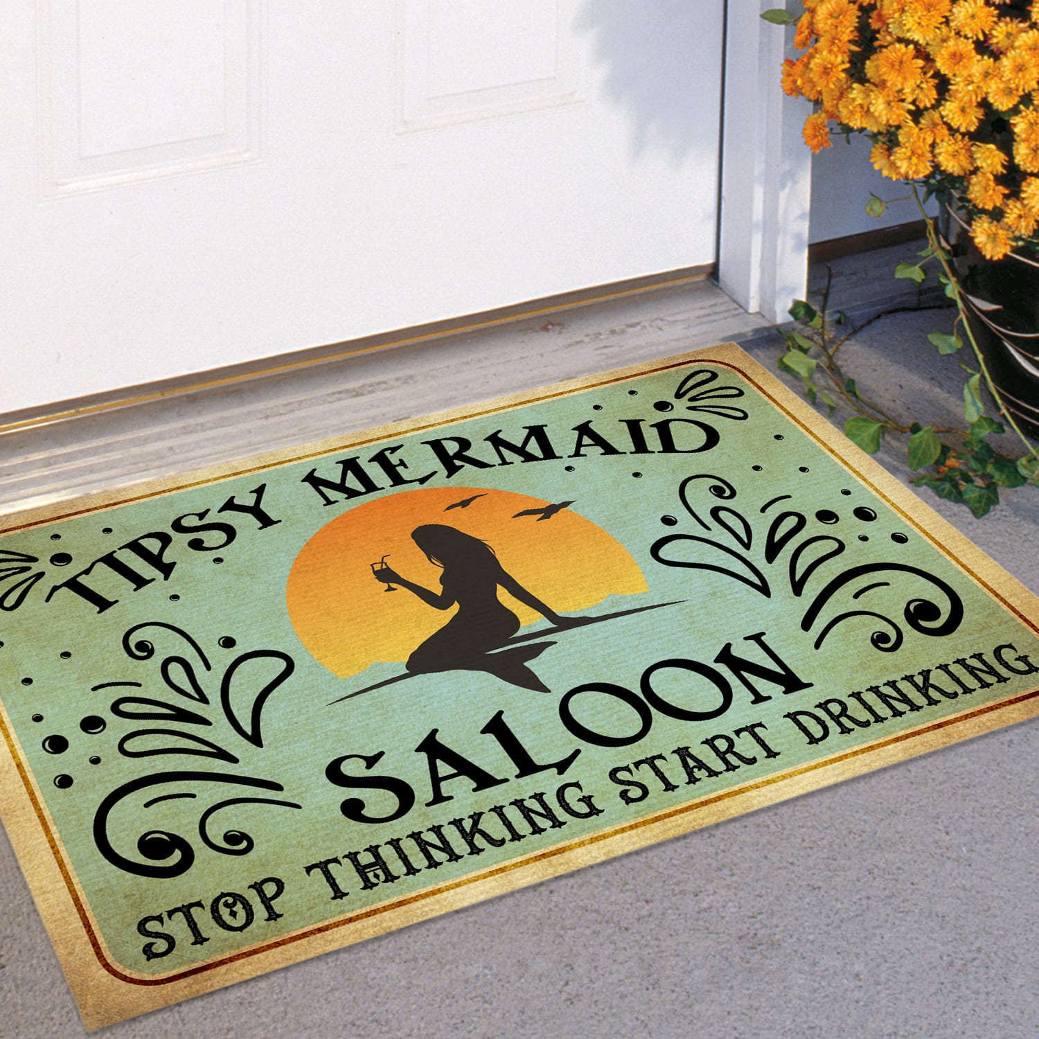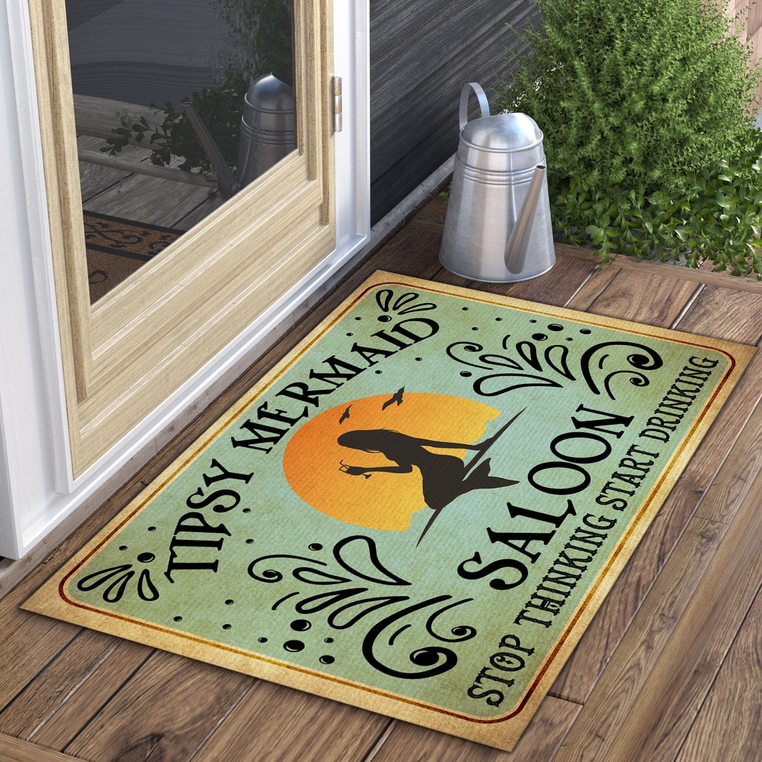 Let’s Shop Tipsy Mermaid Saloon Stop Thinking Start Drinking Decorative Doormat – Welcome Bar Saloon Doormat!