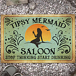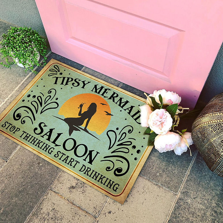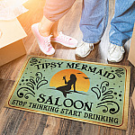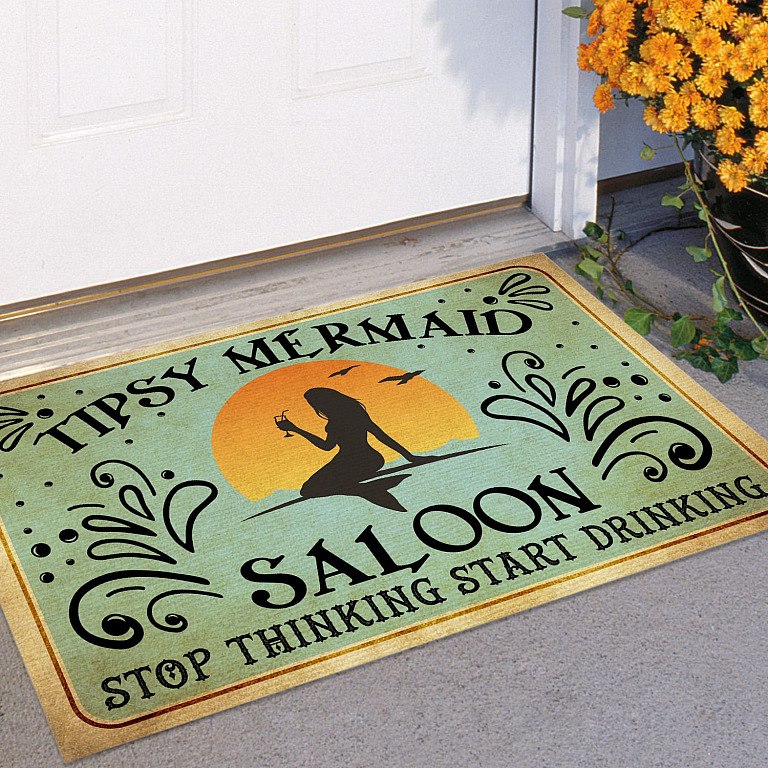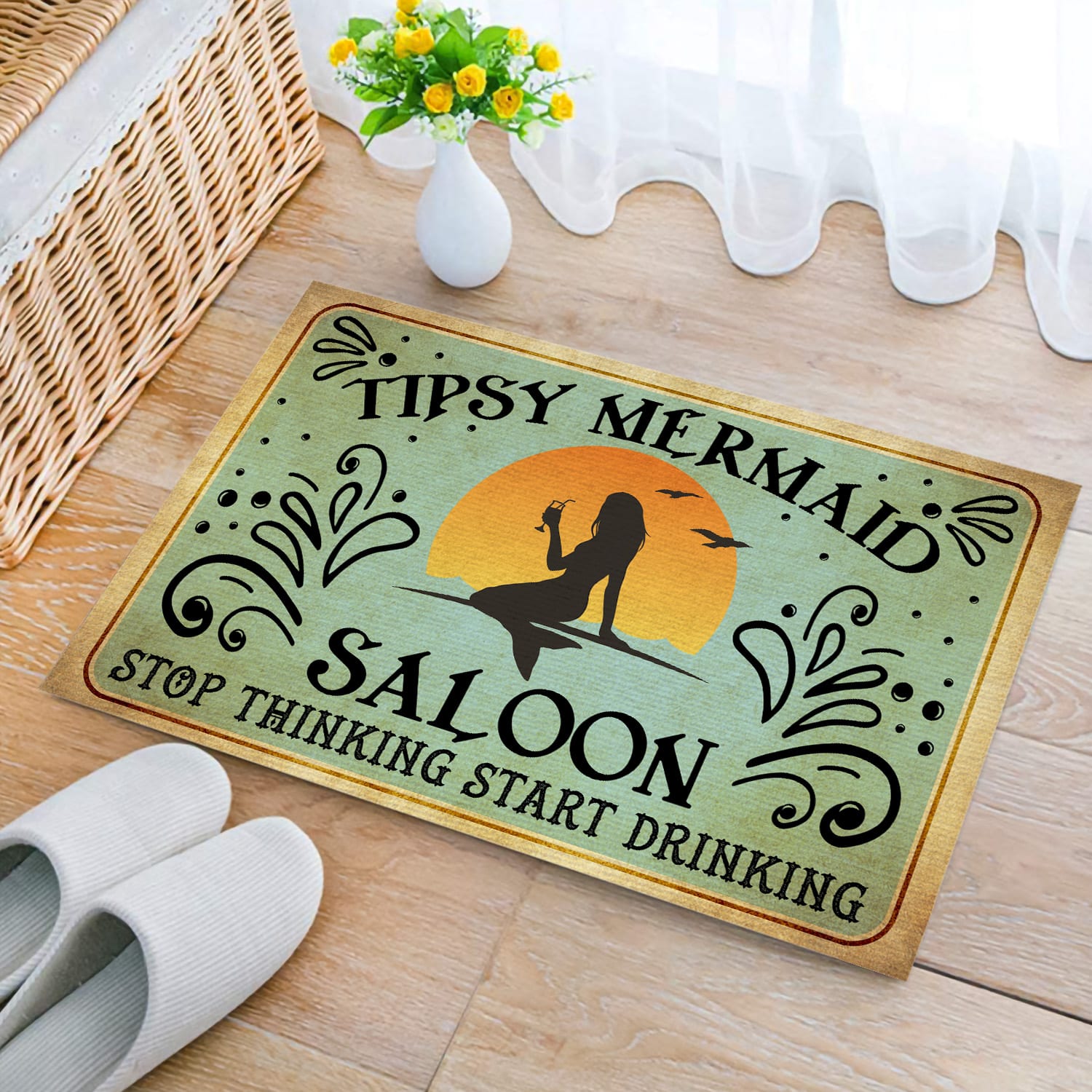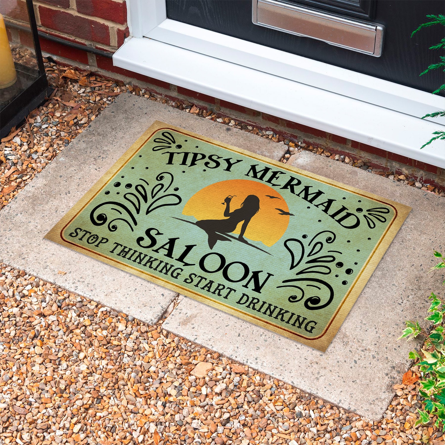 Let’s Shop Tipsy Mermaid Saloon Stop Thinking Start Drinking Decorative Doormat – Welcome Bar Saloon Doormat!