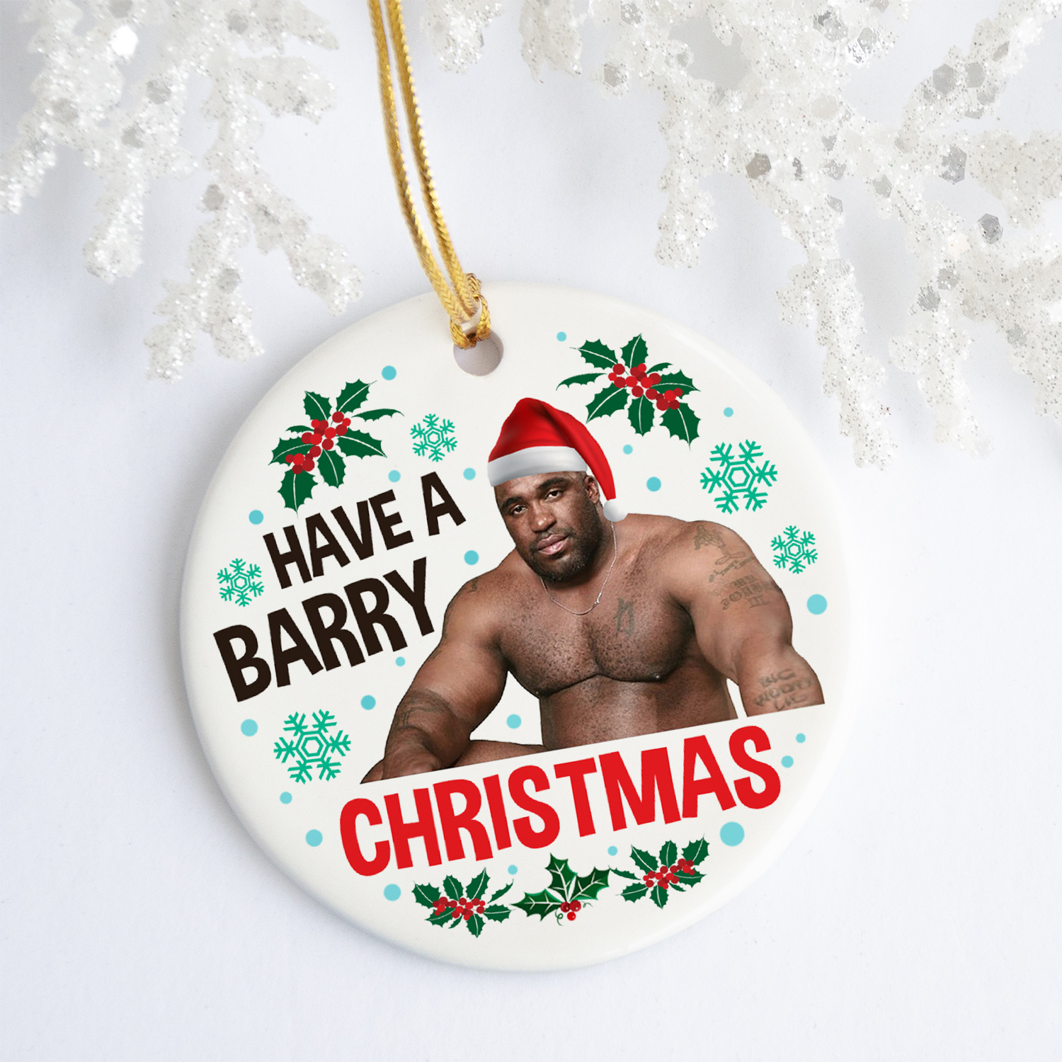 Let’s Shop Have A Barry Christmas Funny Barry Wood Wearing Santa Hat Meme Circle Christmas Tree Ornament Keepsake!