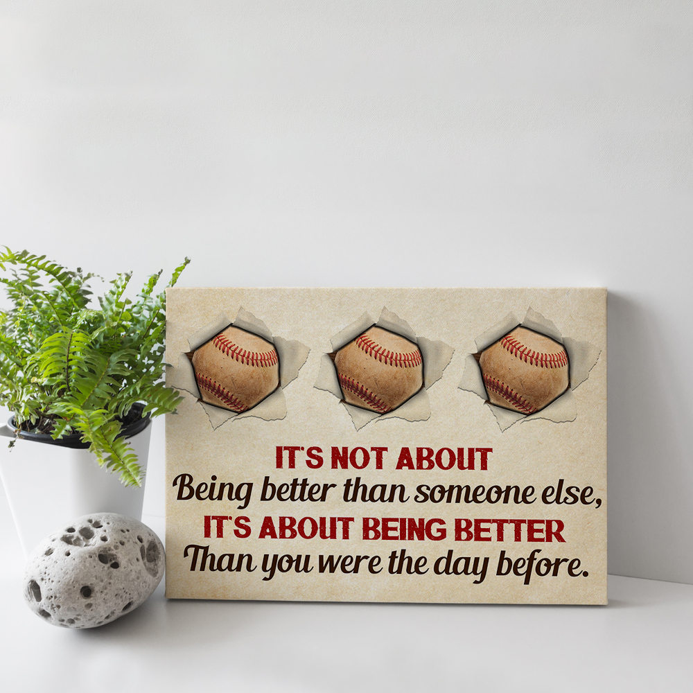 Let’s Shop It’s Not About Being Better Than Someone Else Baseball Canvas Prints – Unframed Poster – Home Decor Wall Art!