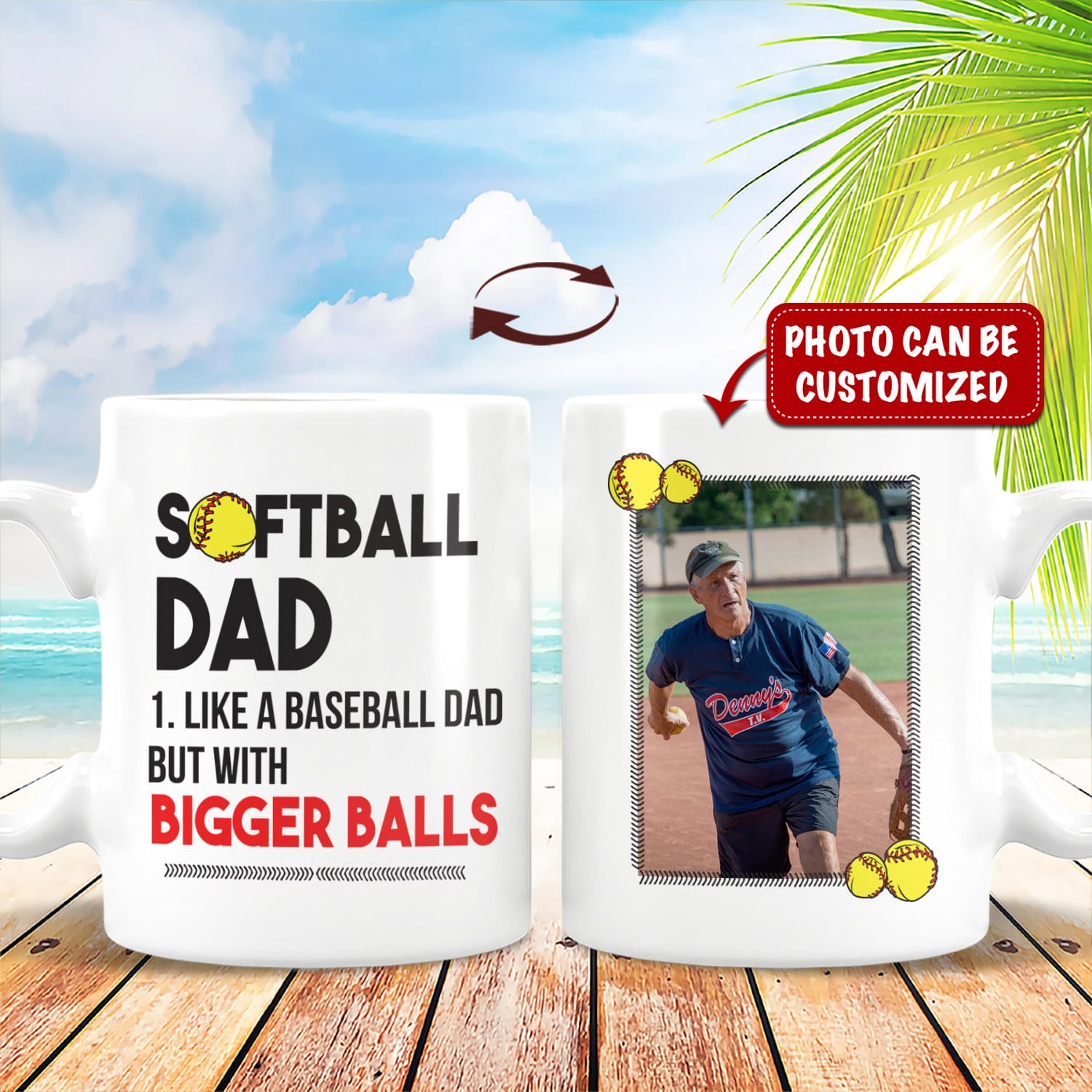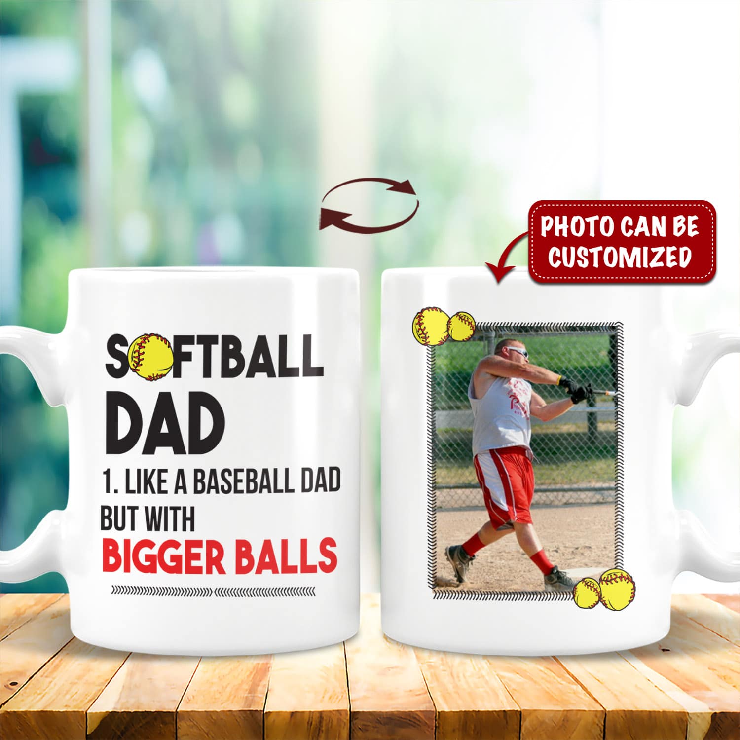 Let’s Shop Personalized Photo Softball Dad Like a Baseball Dad but With Bigger Balls Two Sided Ceramic Coffee Mug!
