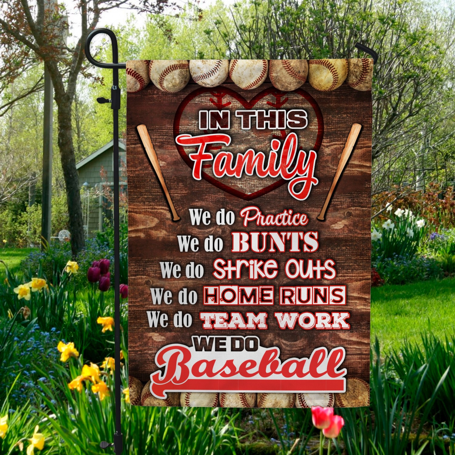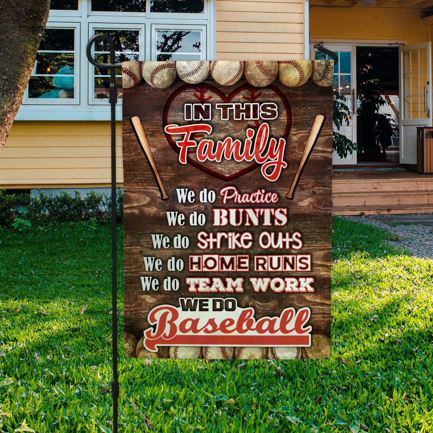 Let’s Shop In This Family We Do Practice Baseball Love From Baseball Family House Garden Flag – Baseball Life Lessons Flag!