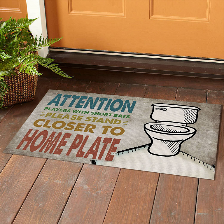 Let’s Shop Attention Players With Short Bats Please Stand Closer To Home Plate Baseball Indoor Outdoor Doormat!