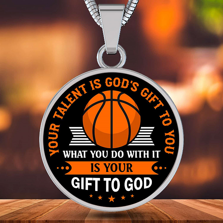 Let’s Shop Basketball Your Talent Is God’s Gift to You What You Do with It Is Your Gift to God Circle Pendant Necklace!